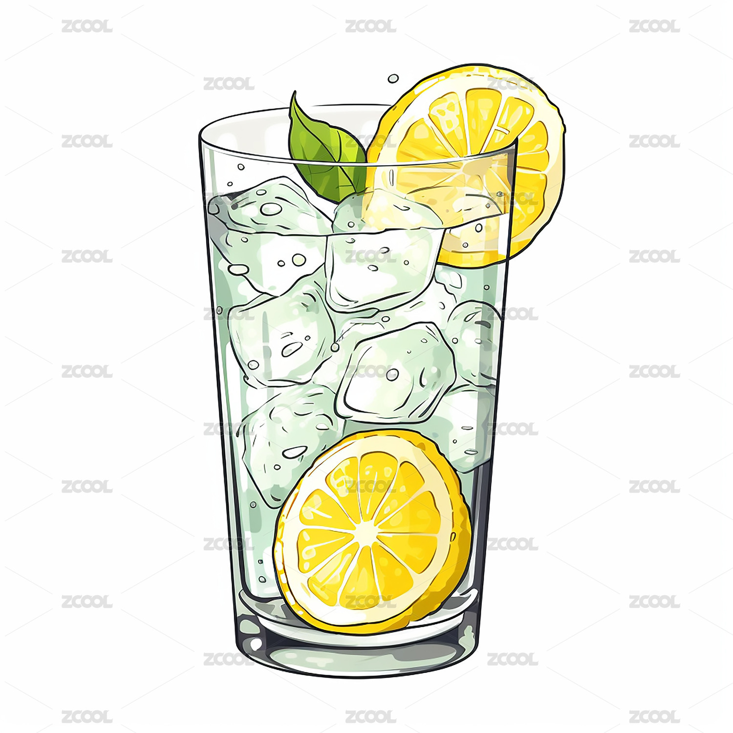 青柠薄荷冰饮插画