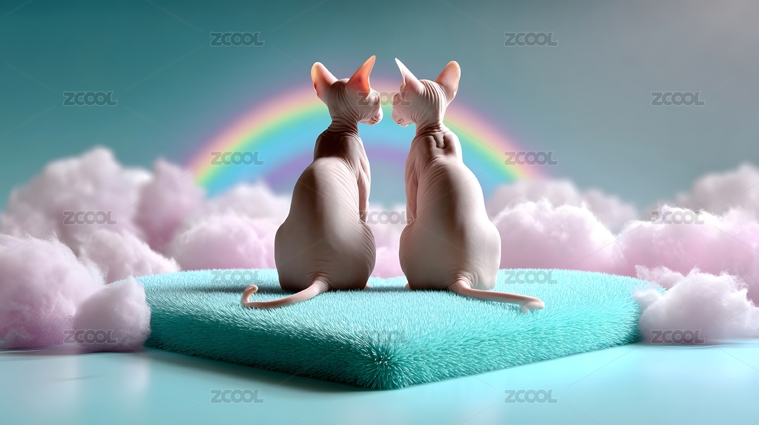 情人节,猫,动物,白色,蓝色,背景,可爱,猫咪,云朵,天空