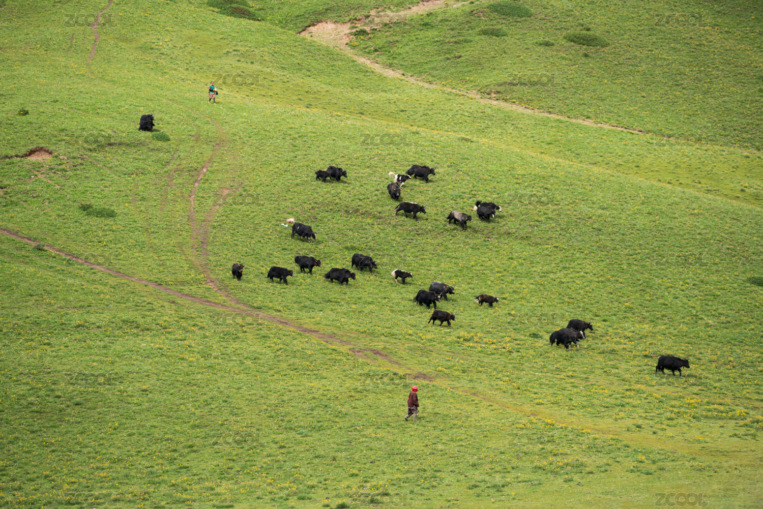牦牛,高原,草甸,藏地,畜牧业,自然风光,绿色,山坡,牲畜,田园
