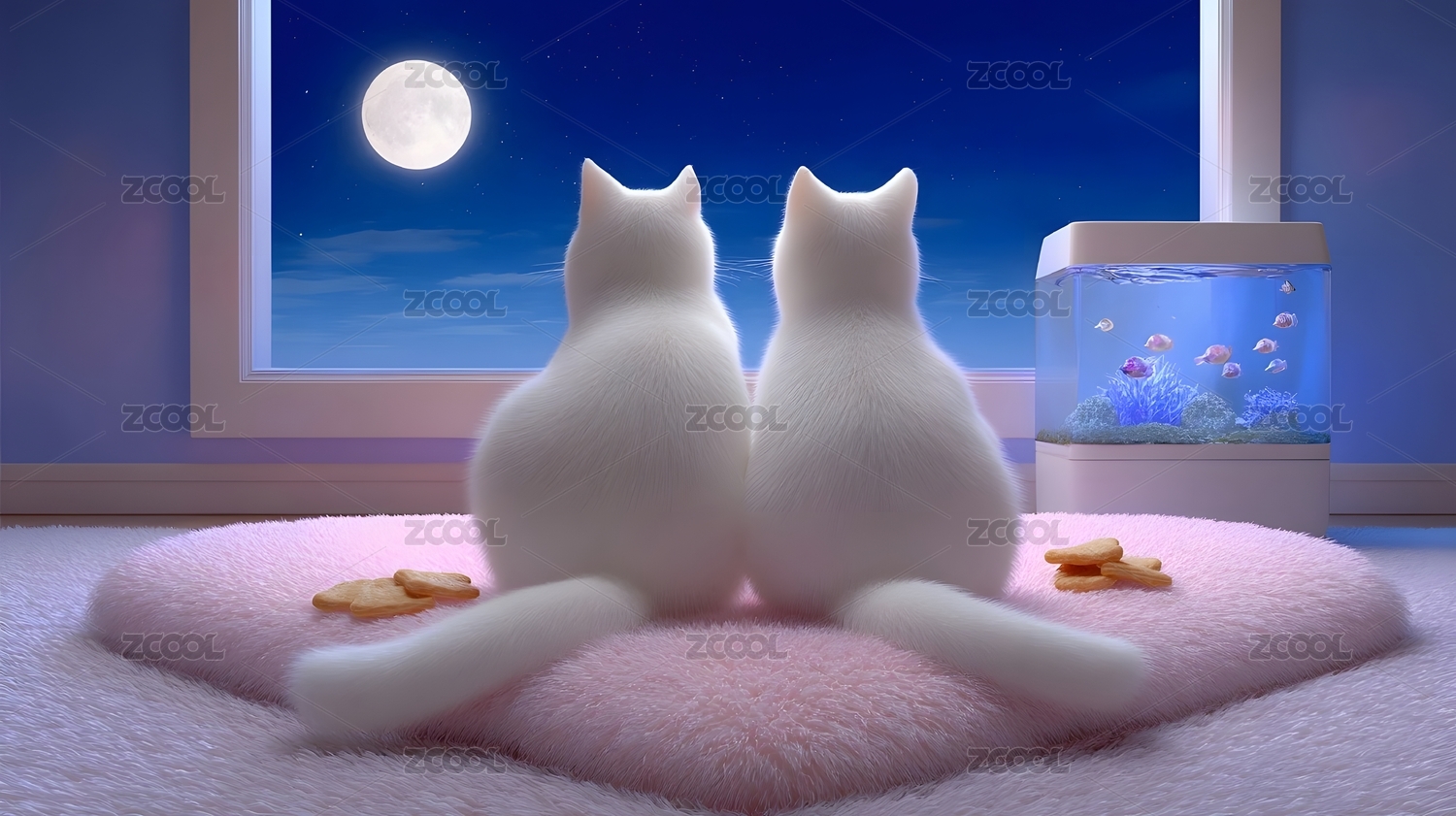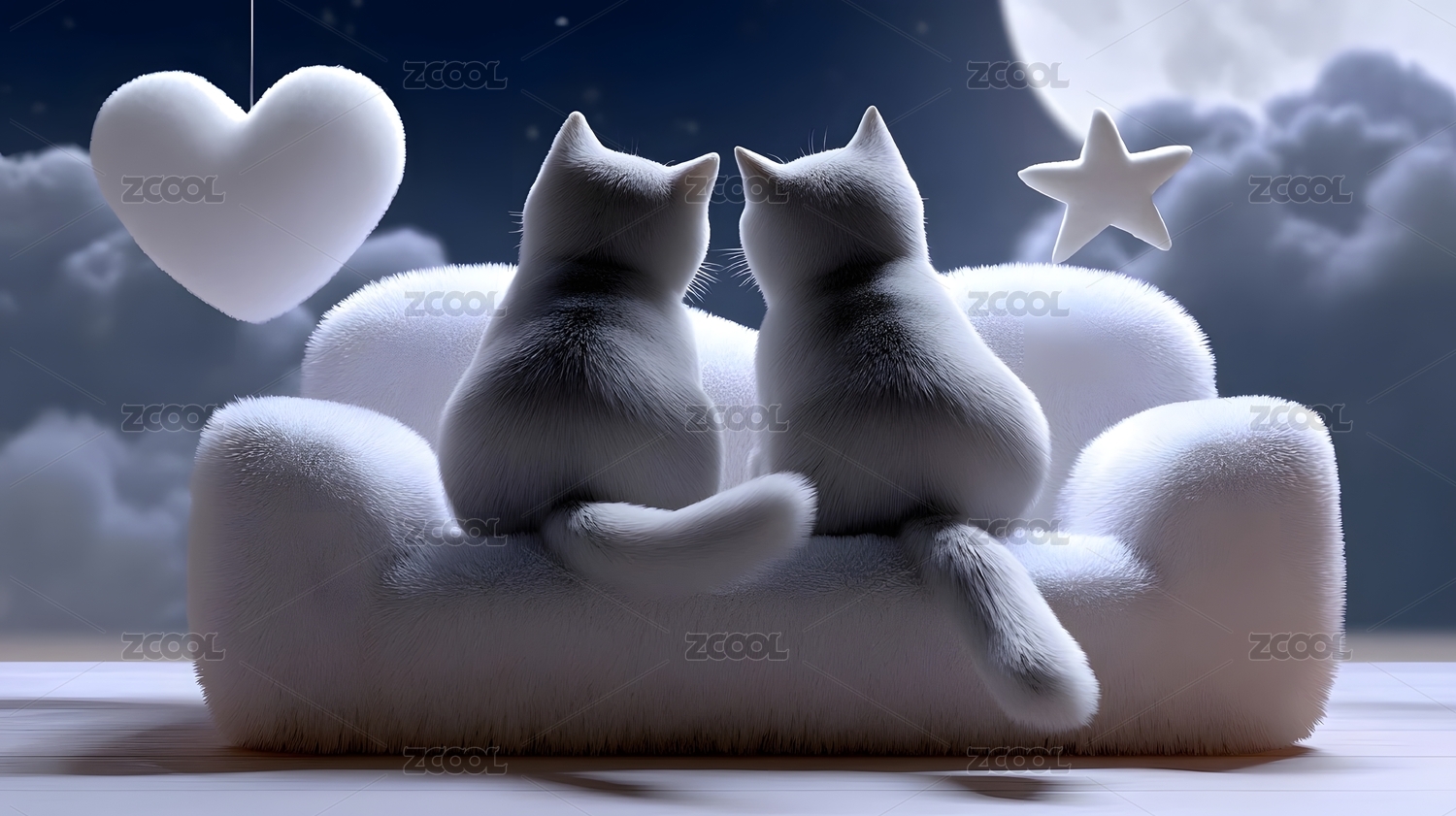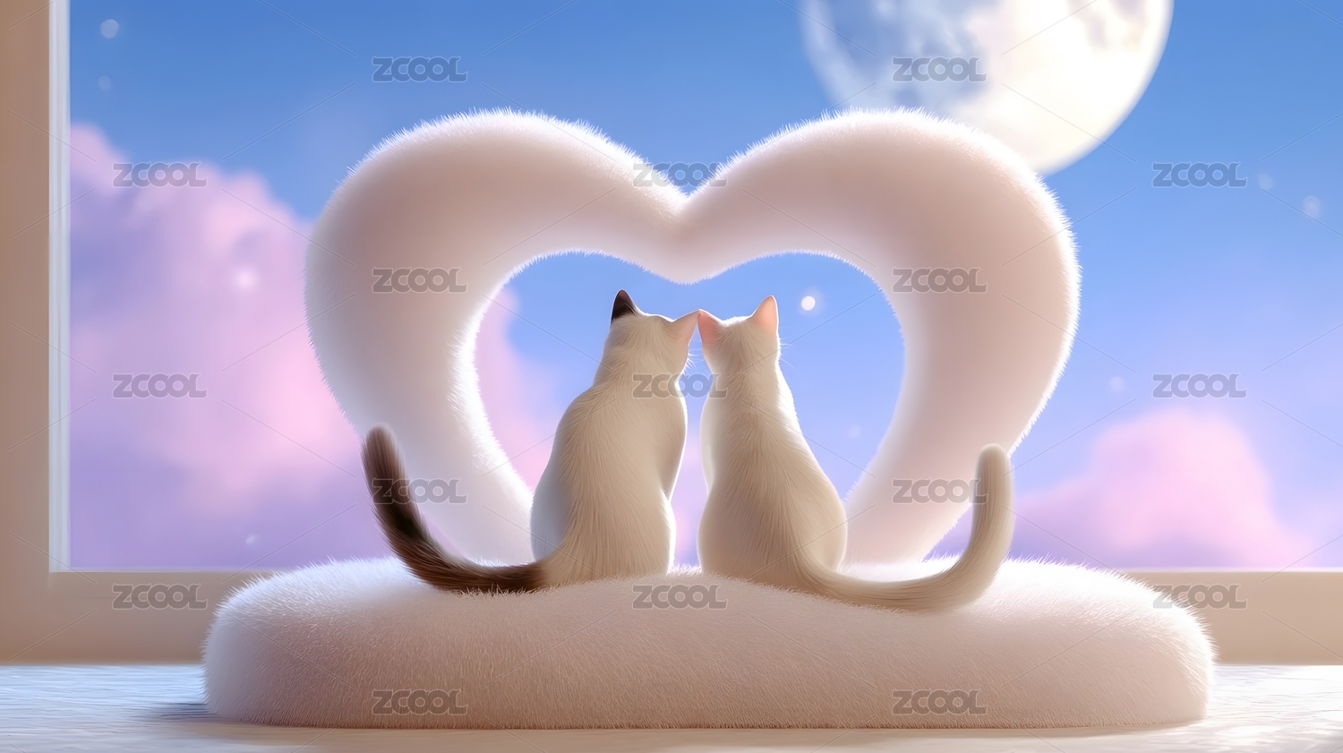 情人节,猫咪,尾巴,毛绒,室内,可爱,动物,爱心,黑猫,白猫