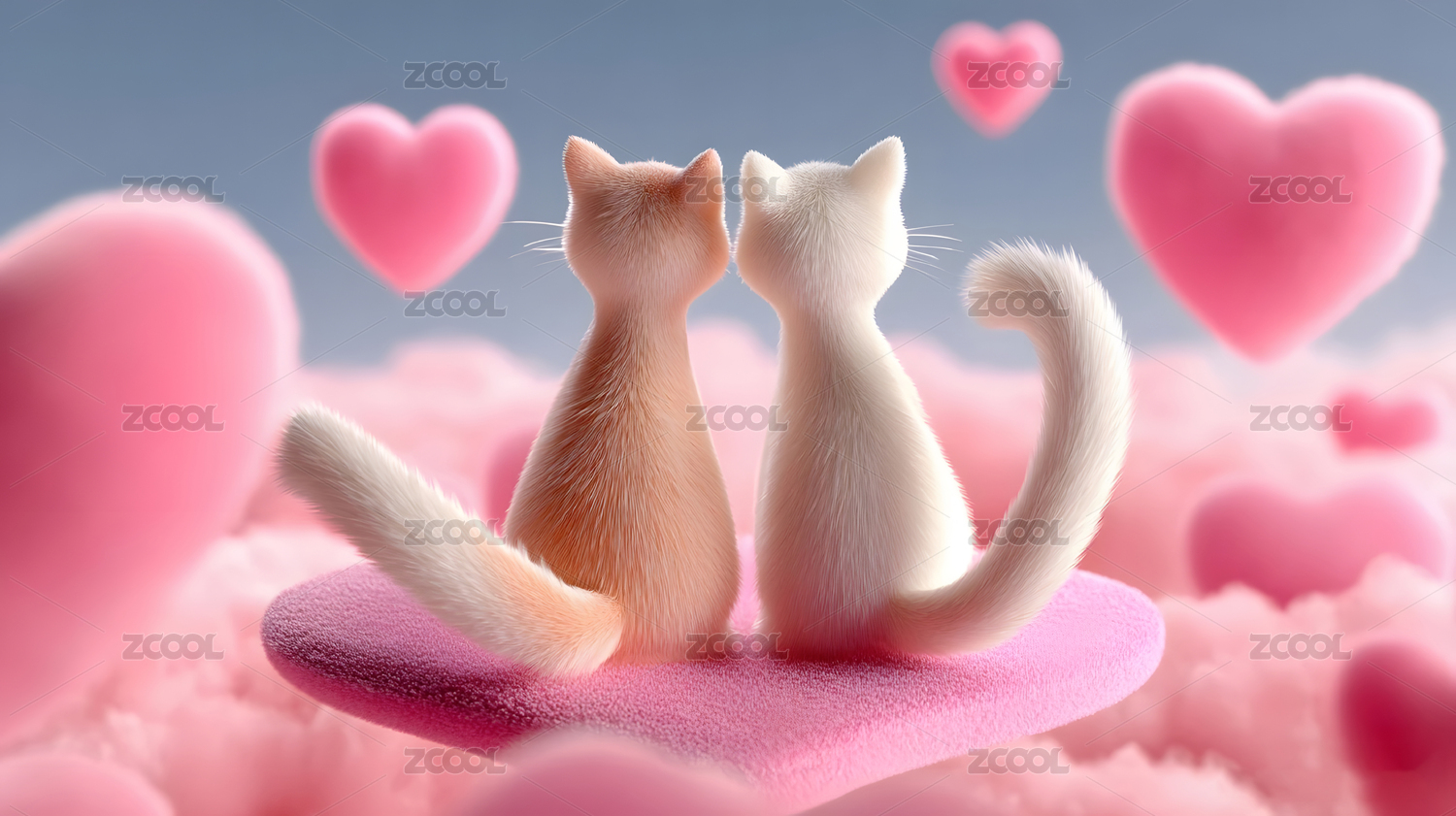情人节,毛绒,地毯,可爱,动物,背景,爱心,黑猫,白猫,紫色