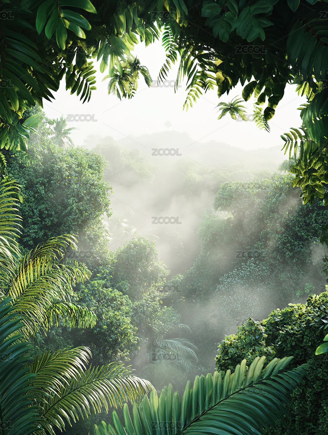 郁郁葱葱的热带雨林阳光穿过树叶照射进来