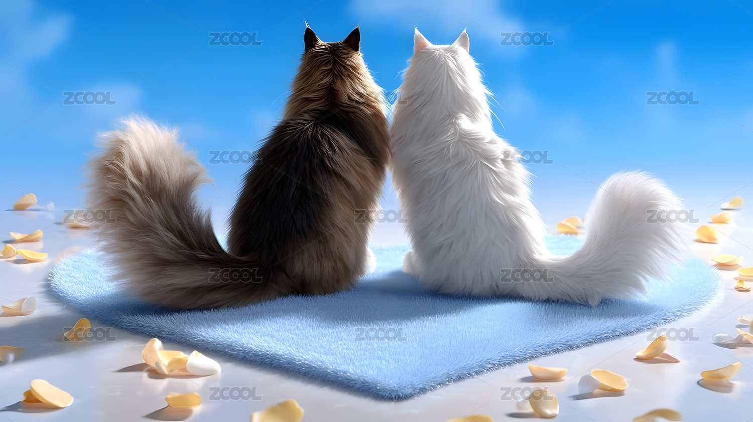 情人节,尾巴,白色,休闲,动物,毛发,背影,猫,心形,长毛