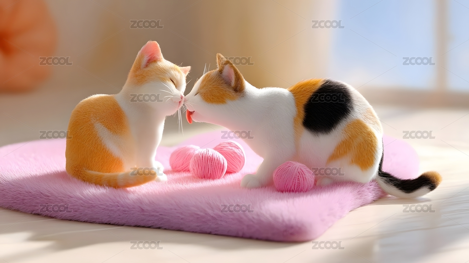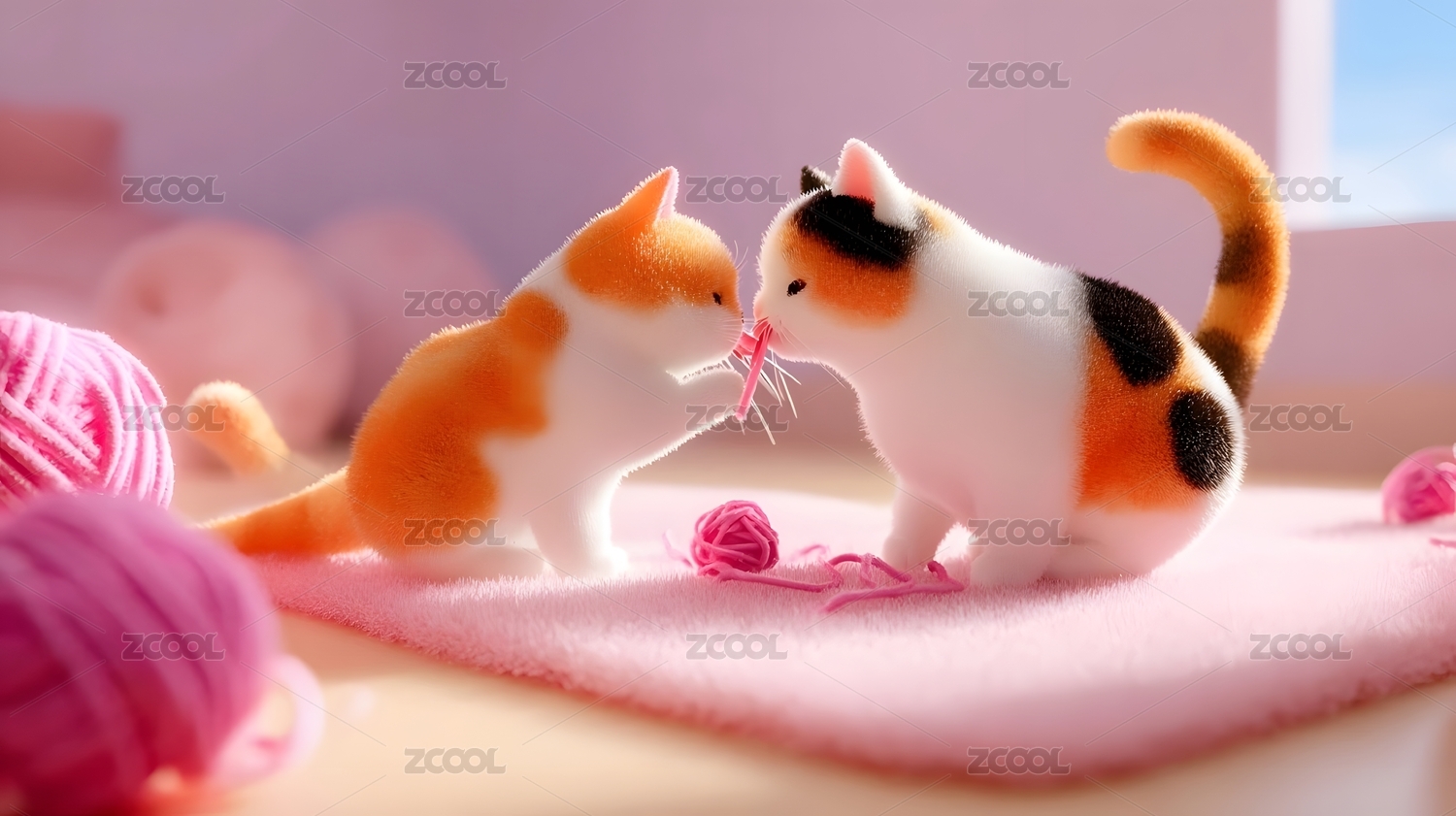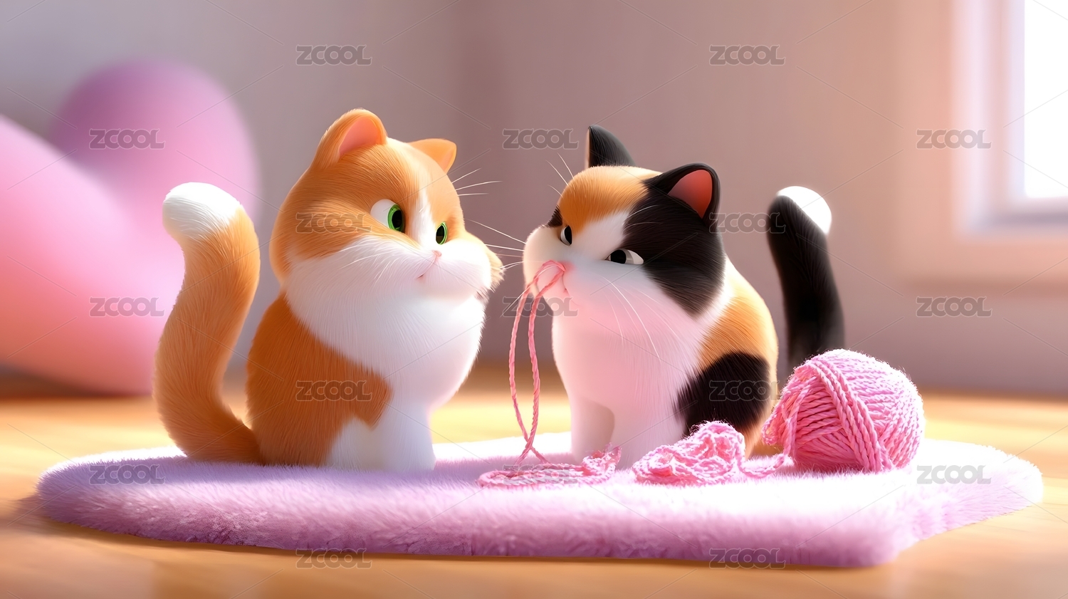 情人节,小猫,毛线,粉色,地毯,玩耍,互动,室内,可爱,毛绒