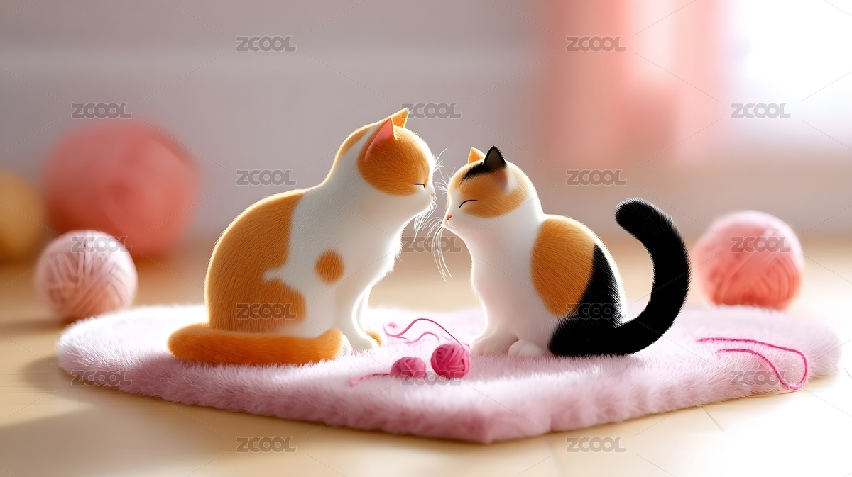 情人节,小猫,毛线,粉色,地毯,互动,室内,可爱,毛绒,地板