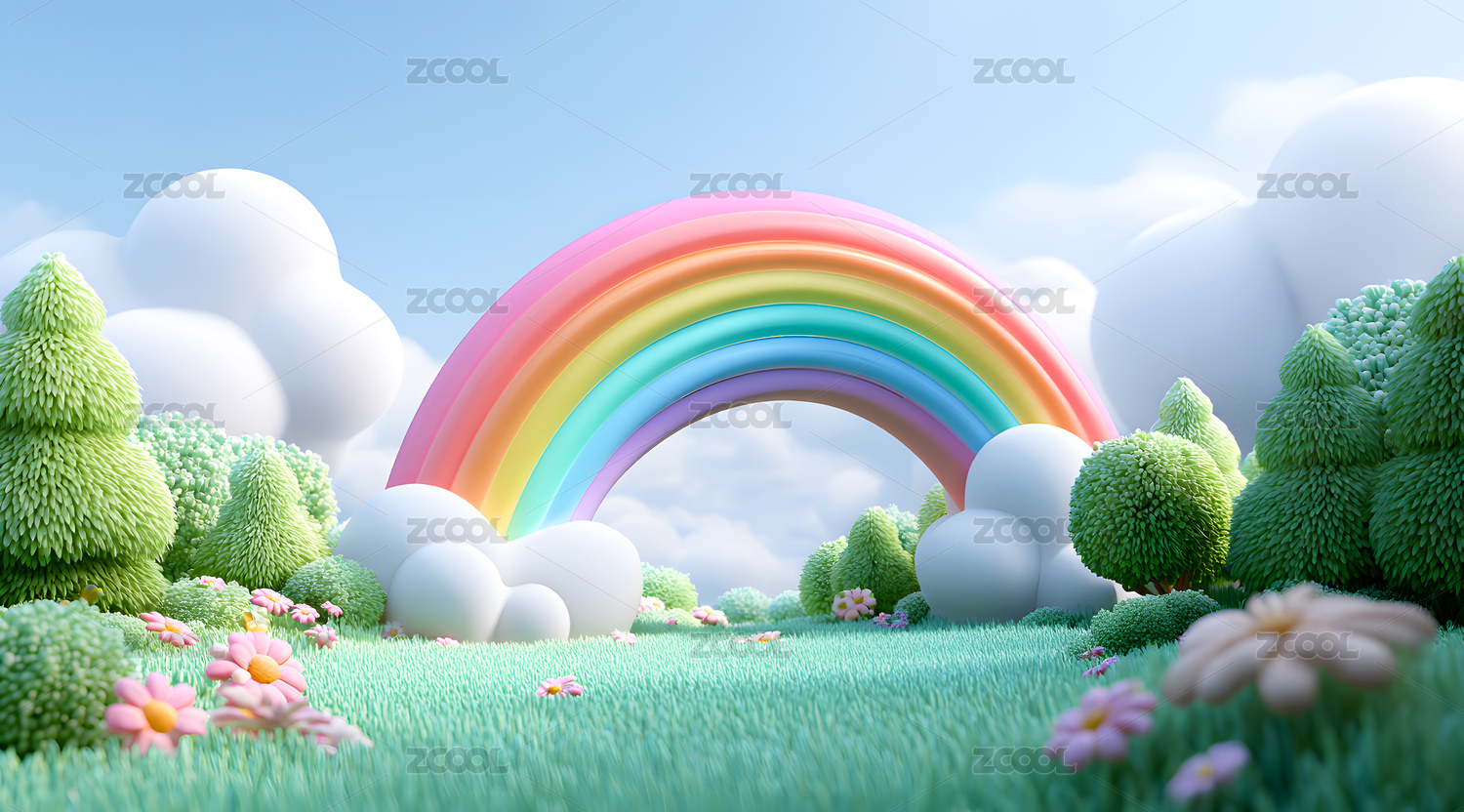 温馨可爱的彩虹门儿童乐园3D卡通立体插画