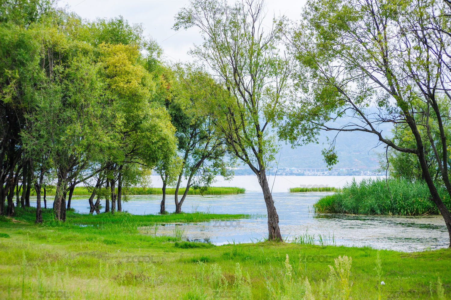 洱海,自然风光,绿植,湖泊,沿岸景观,草地,树木,大理,云南,苍山