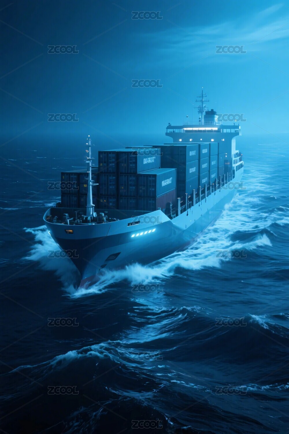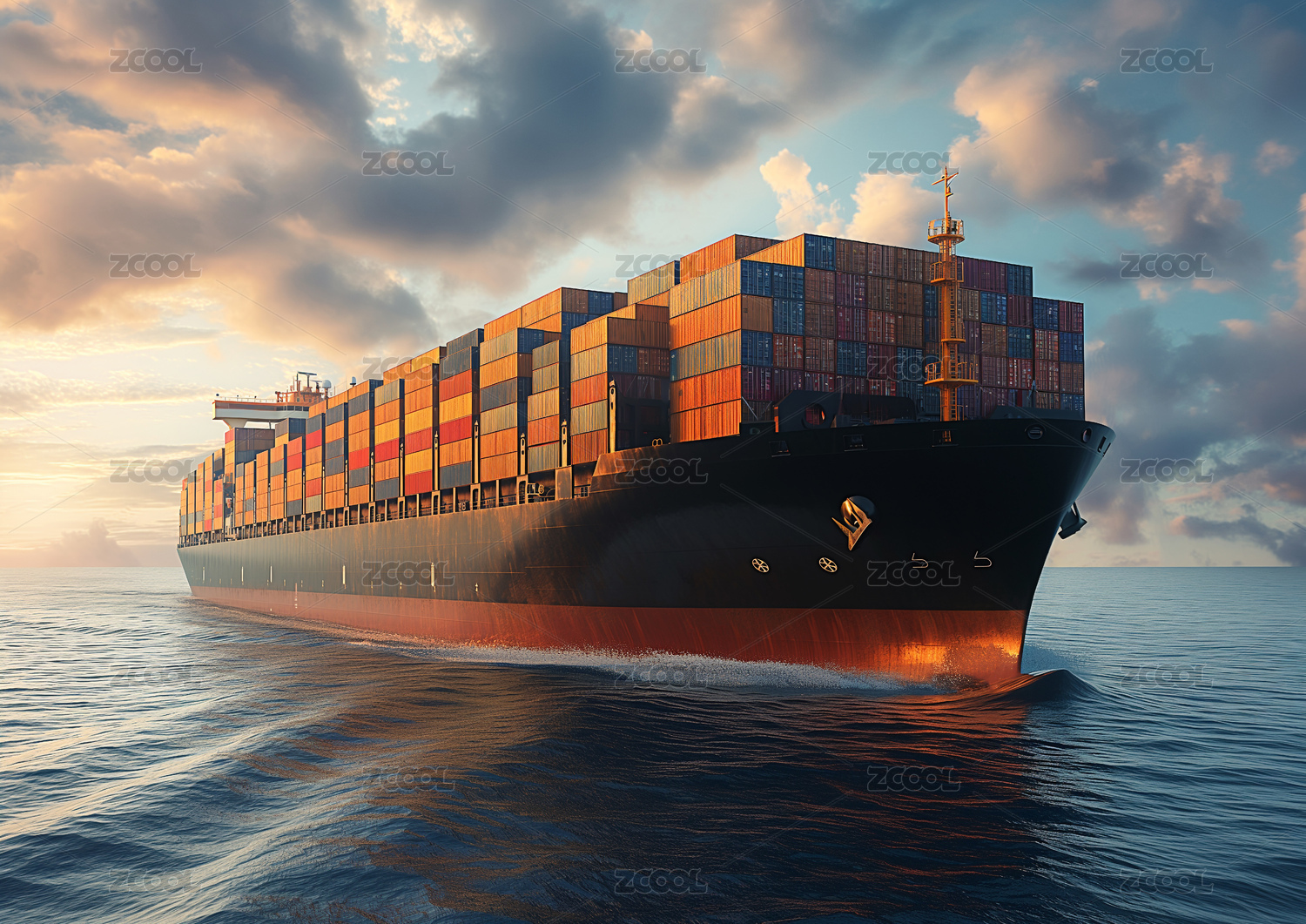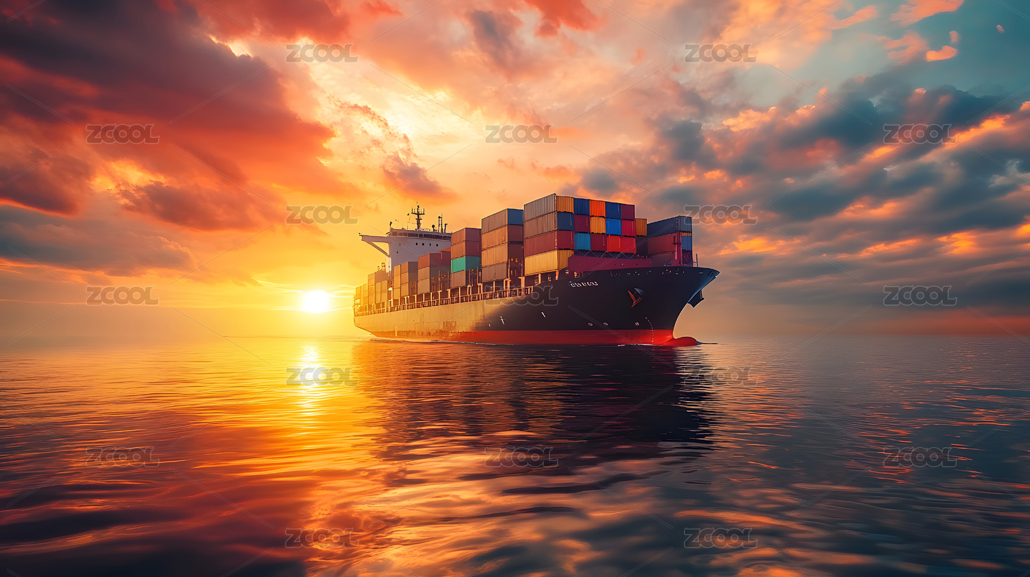 满载彩色集装箱货轮航行于蔚蓝海洋