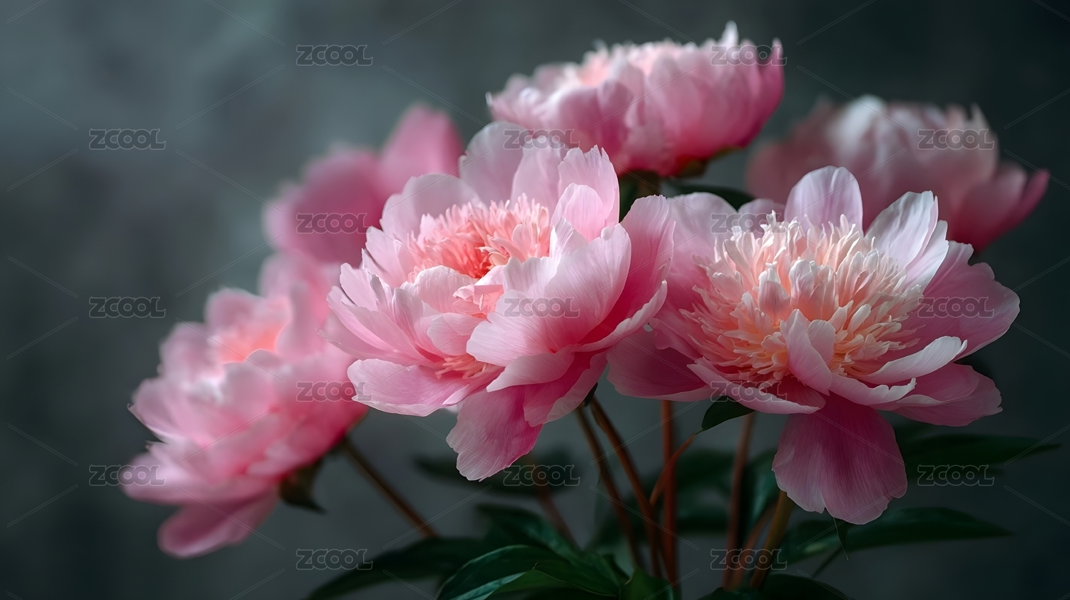 粉色牡丹花束特写