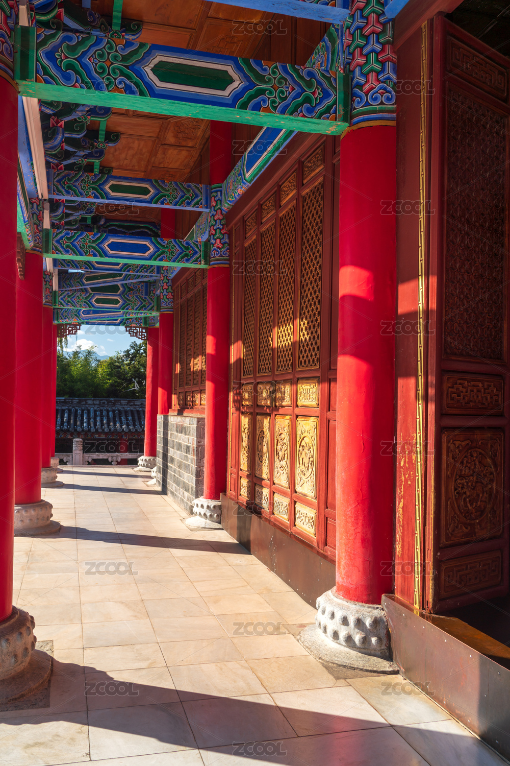 南宁狮山公园竹影桥中式传统亭台楼阁长廊