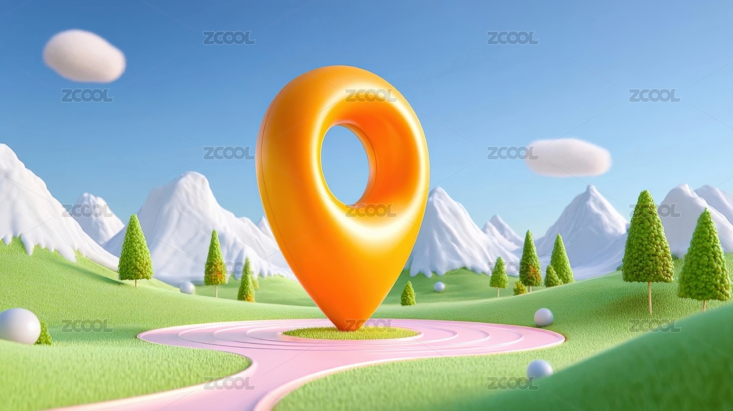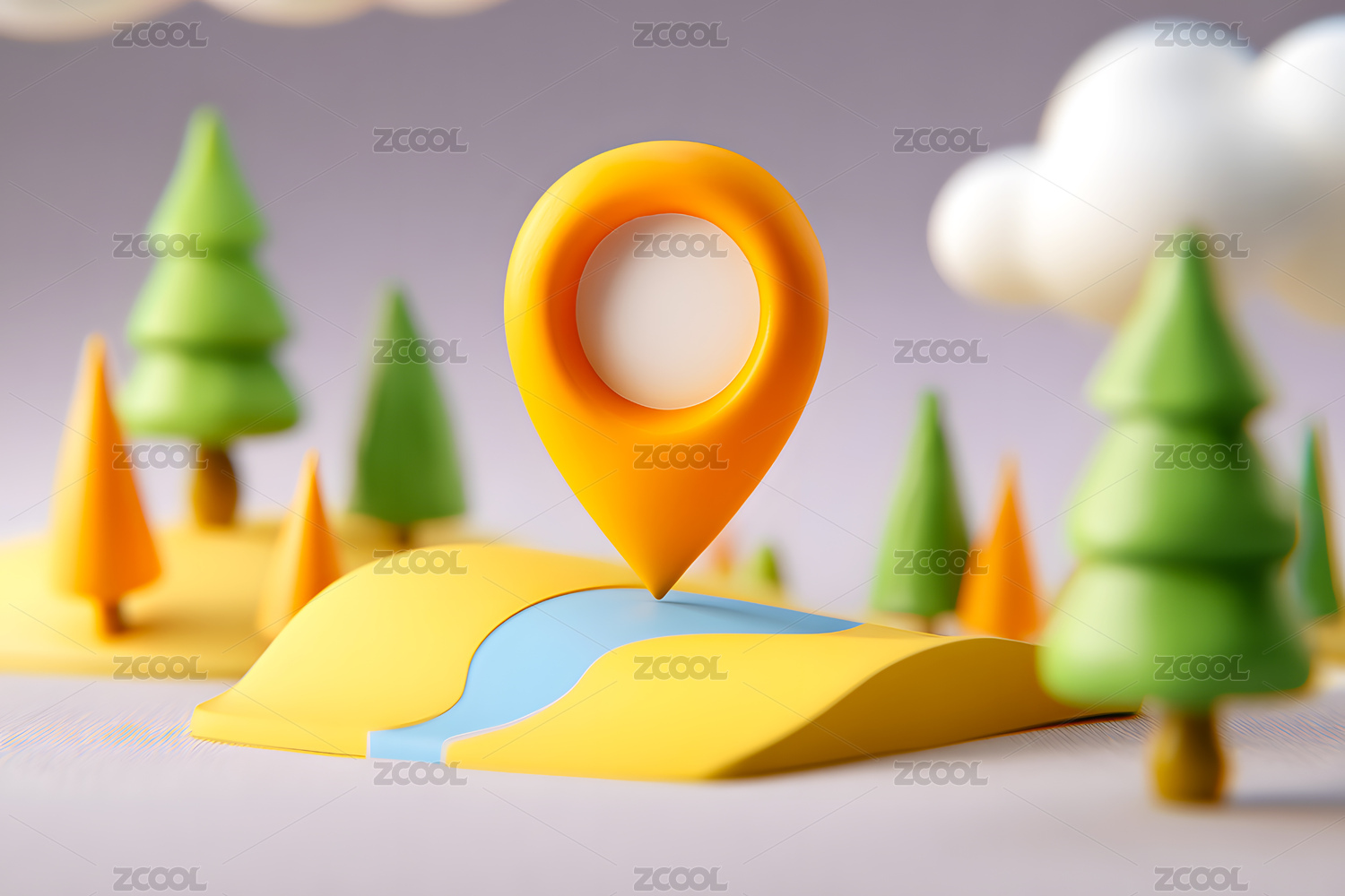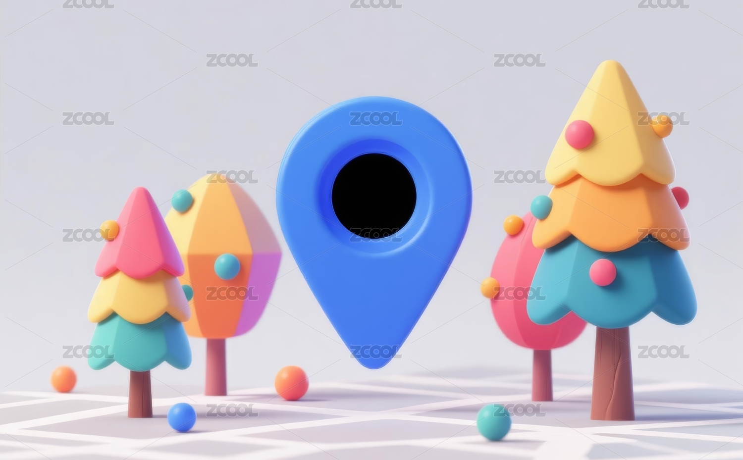 主视觉,地标,多彩,风格,地图,装饰,场景,彩色,树木,创意