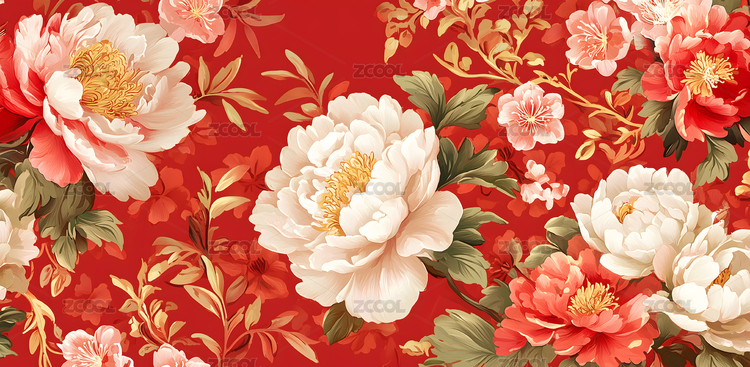 红色背景下的牡丹花墙纸国花