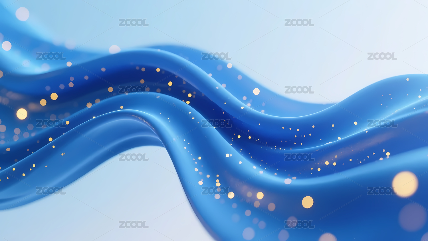 蓝色波浪线与金色光点