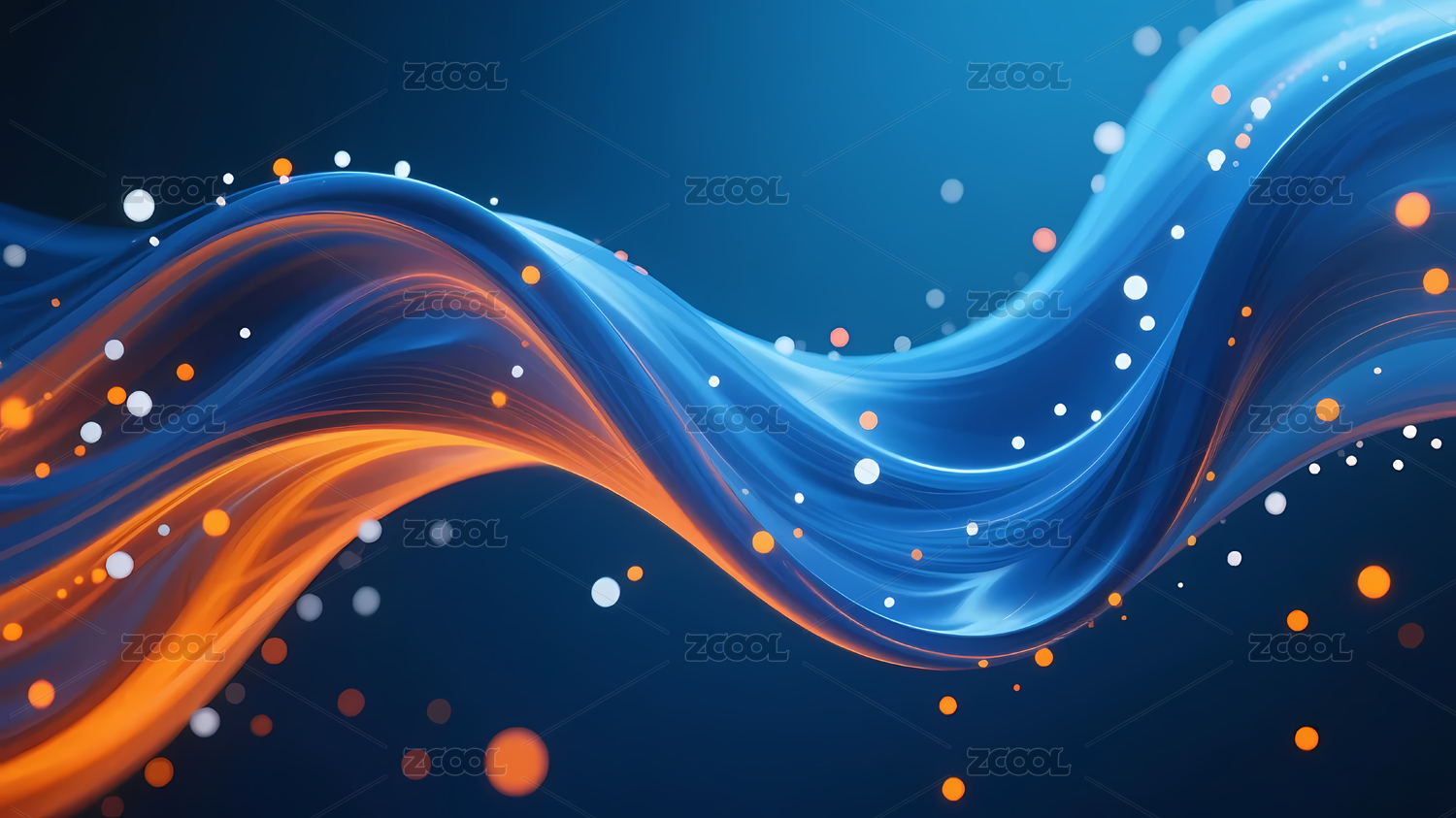 蓝橙波浪线条闪烁光点