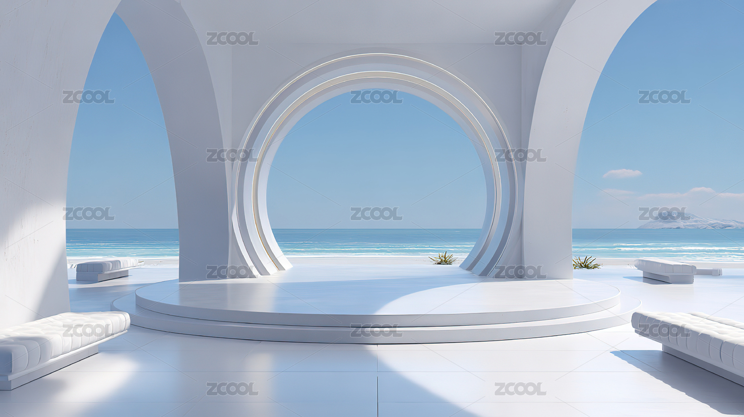 极简白色建筑与海景