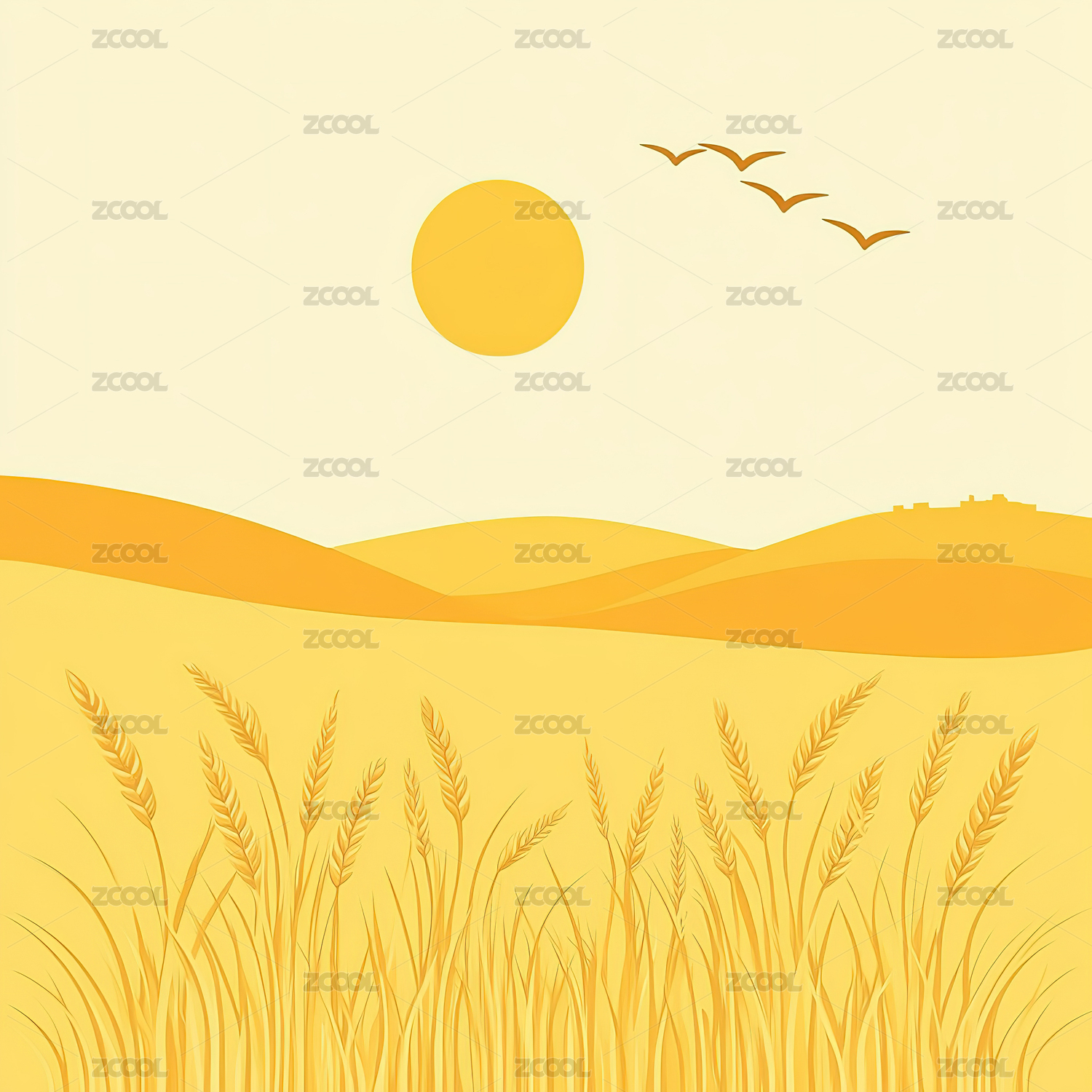秋天丰收的麦田插画
