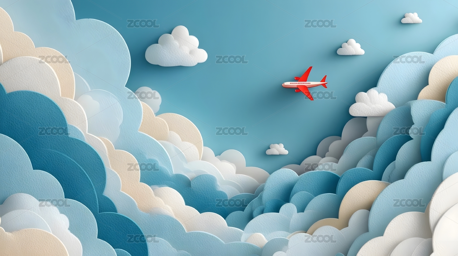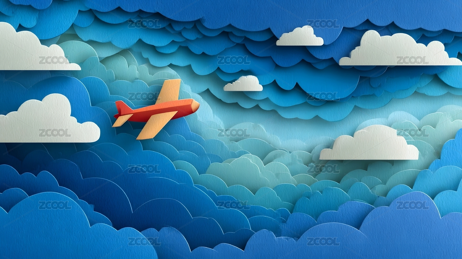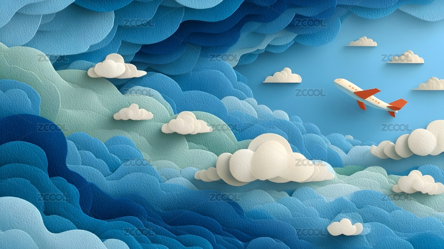纸艺风格天空与飞机