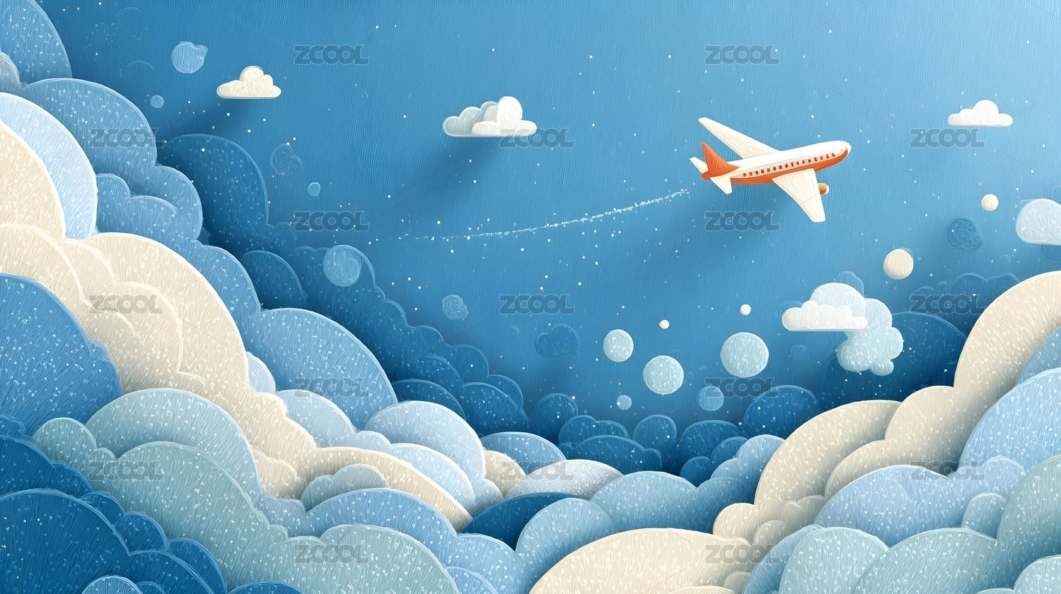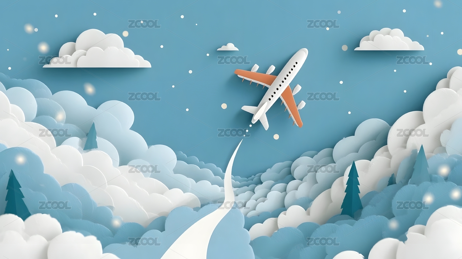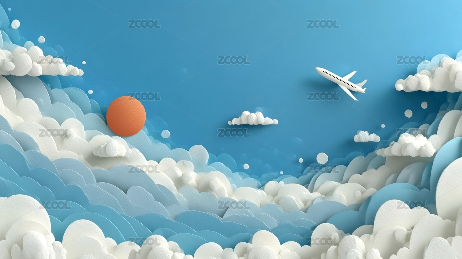 纸艺风格天空与飞机
