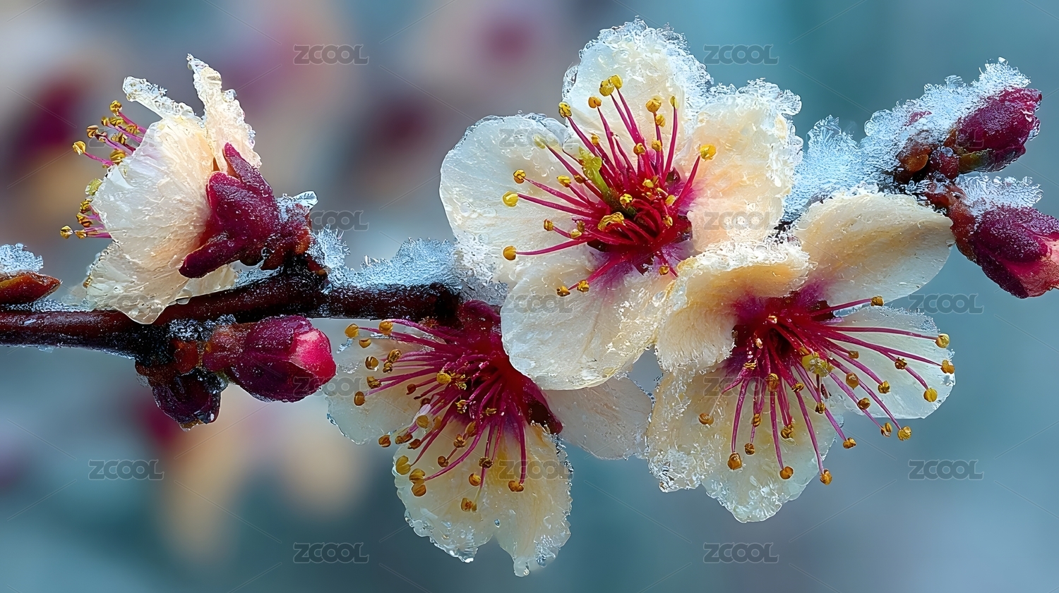 白色,花朵,花瓣,植物,花蕊,枝条,冬天,自然,冰晶,枝干