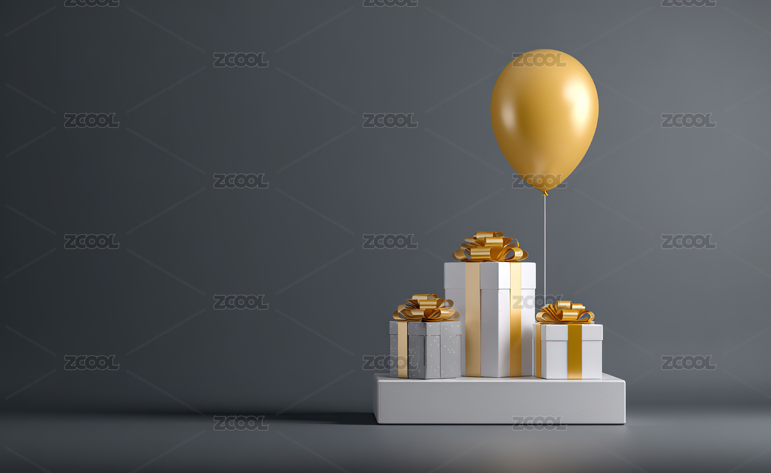 节日气球礼盒周年纪念日生日快乐3D渲染