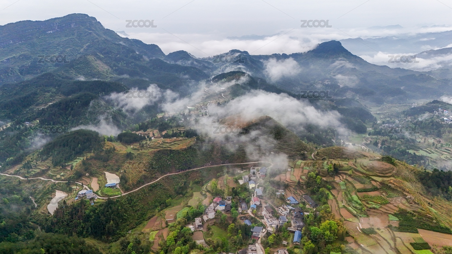 重庆酉阳雨中乡村薄雾袅绕美若仙境