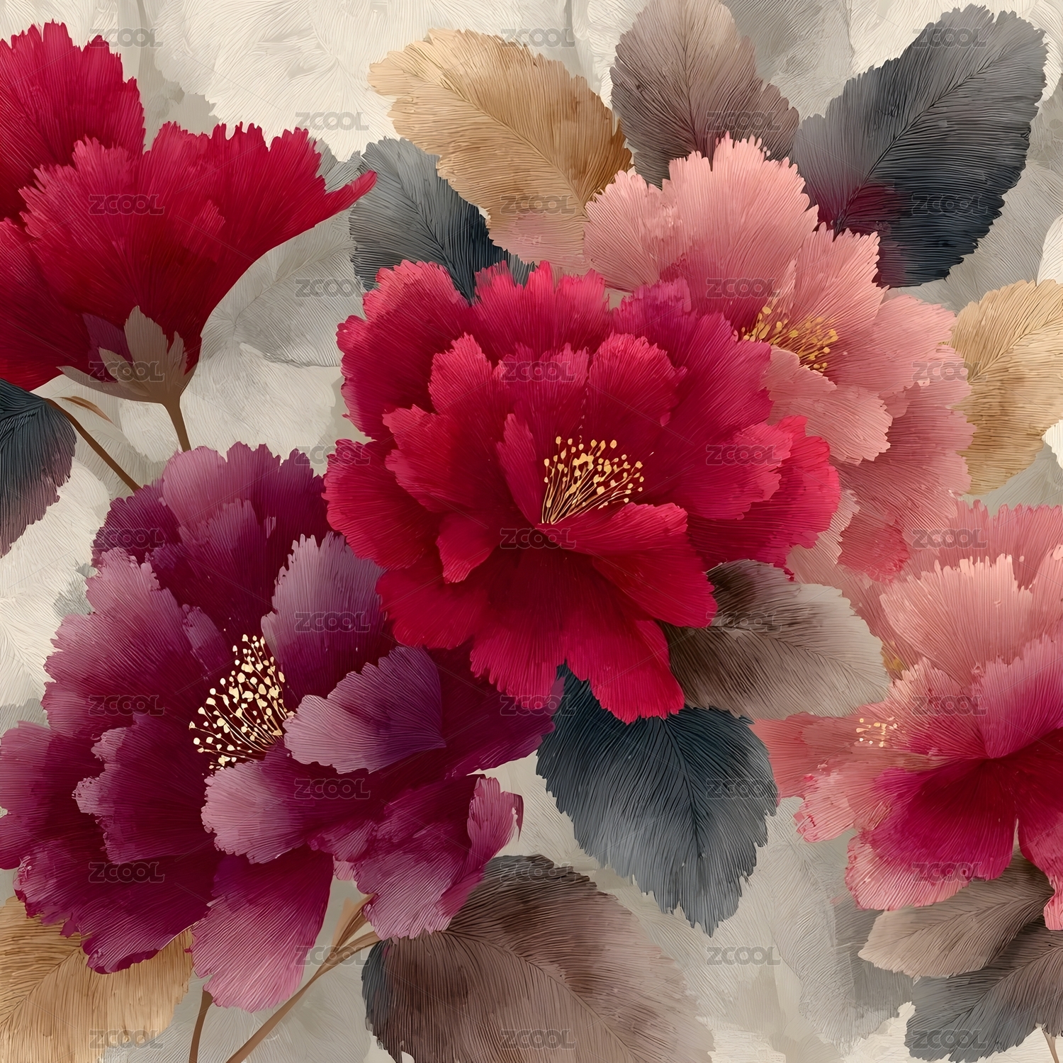 绿叶,植物,自然,花朵,花瓣,花蕊,粉色,图案,绘画,花卉