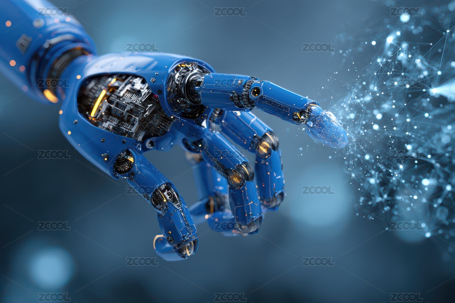 蓝色发光机械手特写展现科技感