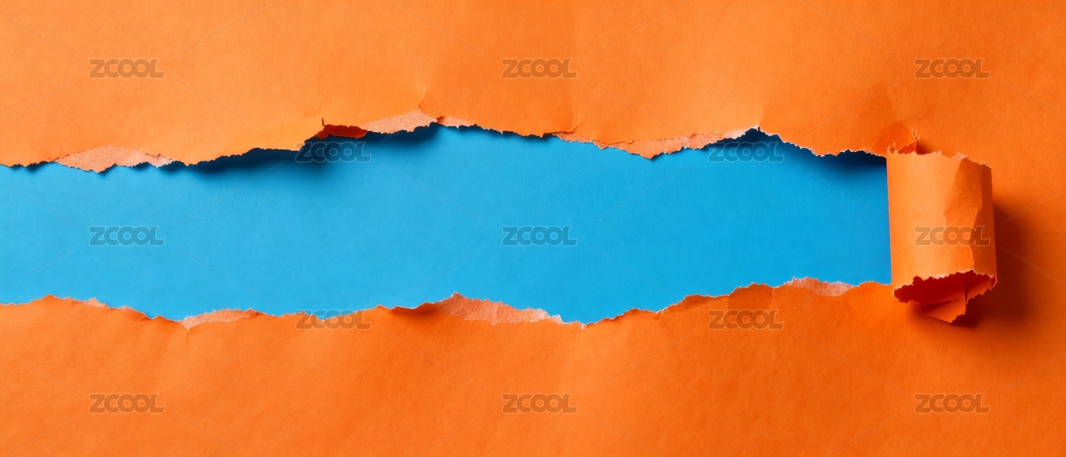 橙色纸张撕开蓝色背景