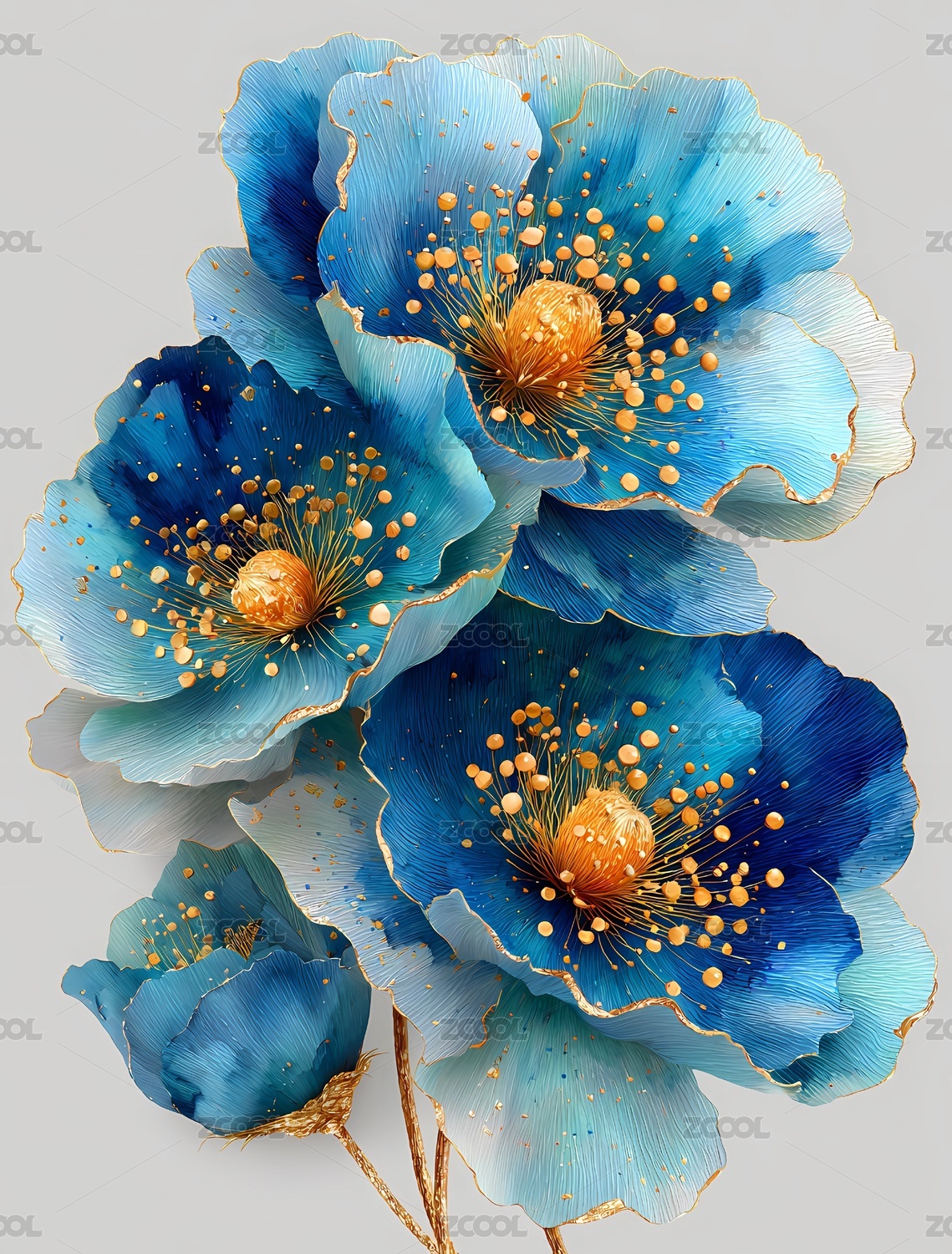 花瓣,花蕊,植物,花朵,花枝,蓝色,绘画,插画,金色,艺术