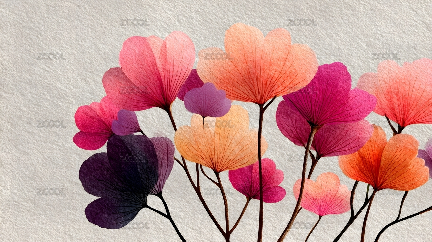 黄色,枝条,花朵,水彩,花瓣,红色,橙色,花束,插画,花卉