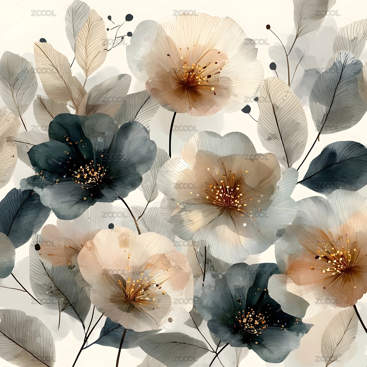 绿色,植物,叶子,蓝色,花朵,水彩,花瓣,粉色,花蕊,花茎