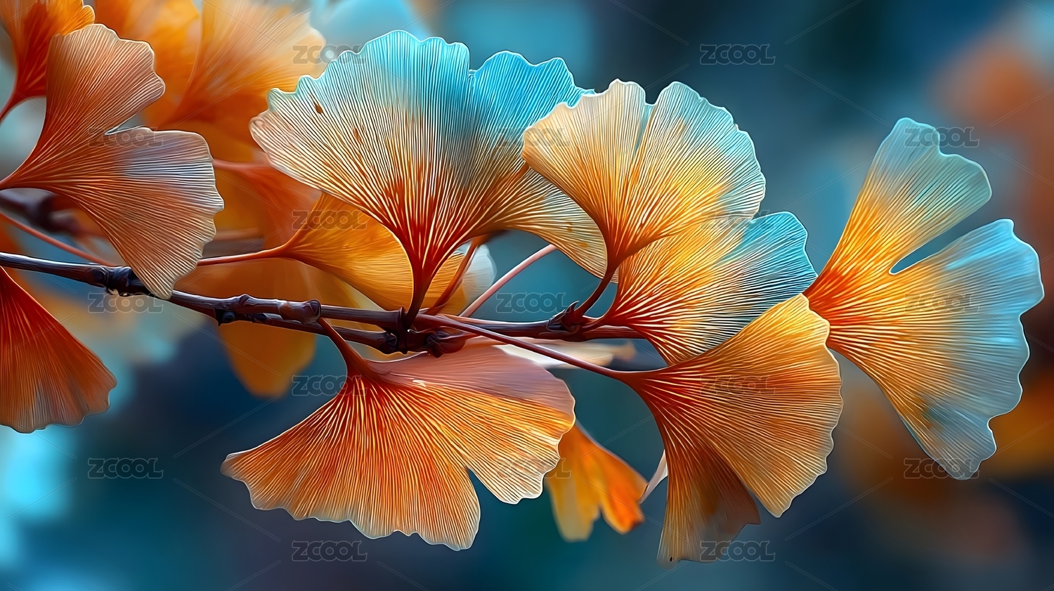 植物,自然,纹理,叶脉,特写,银杏,叶子,枝条,脉络,扇形