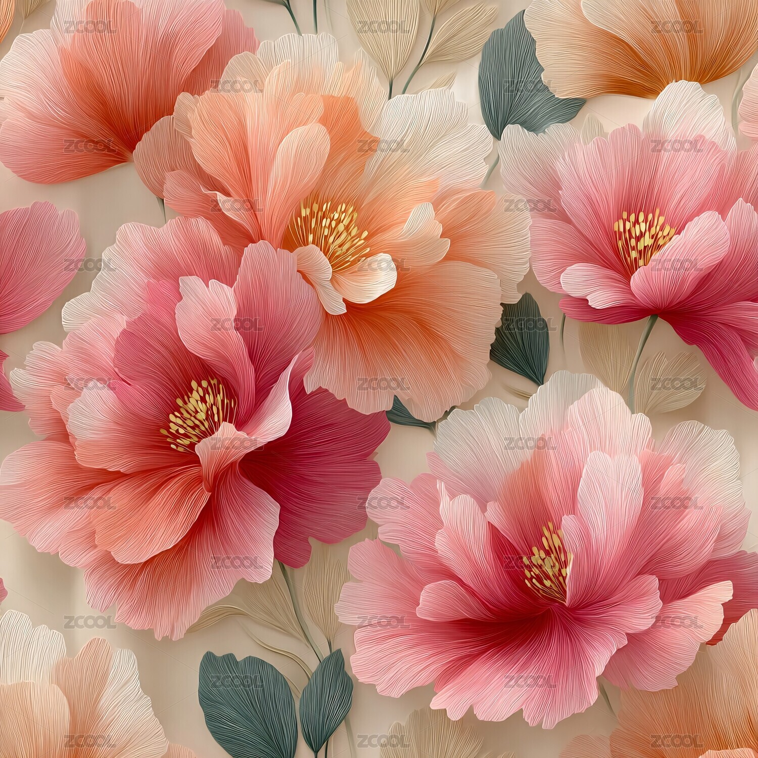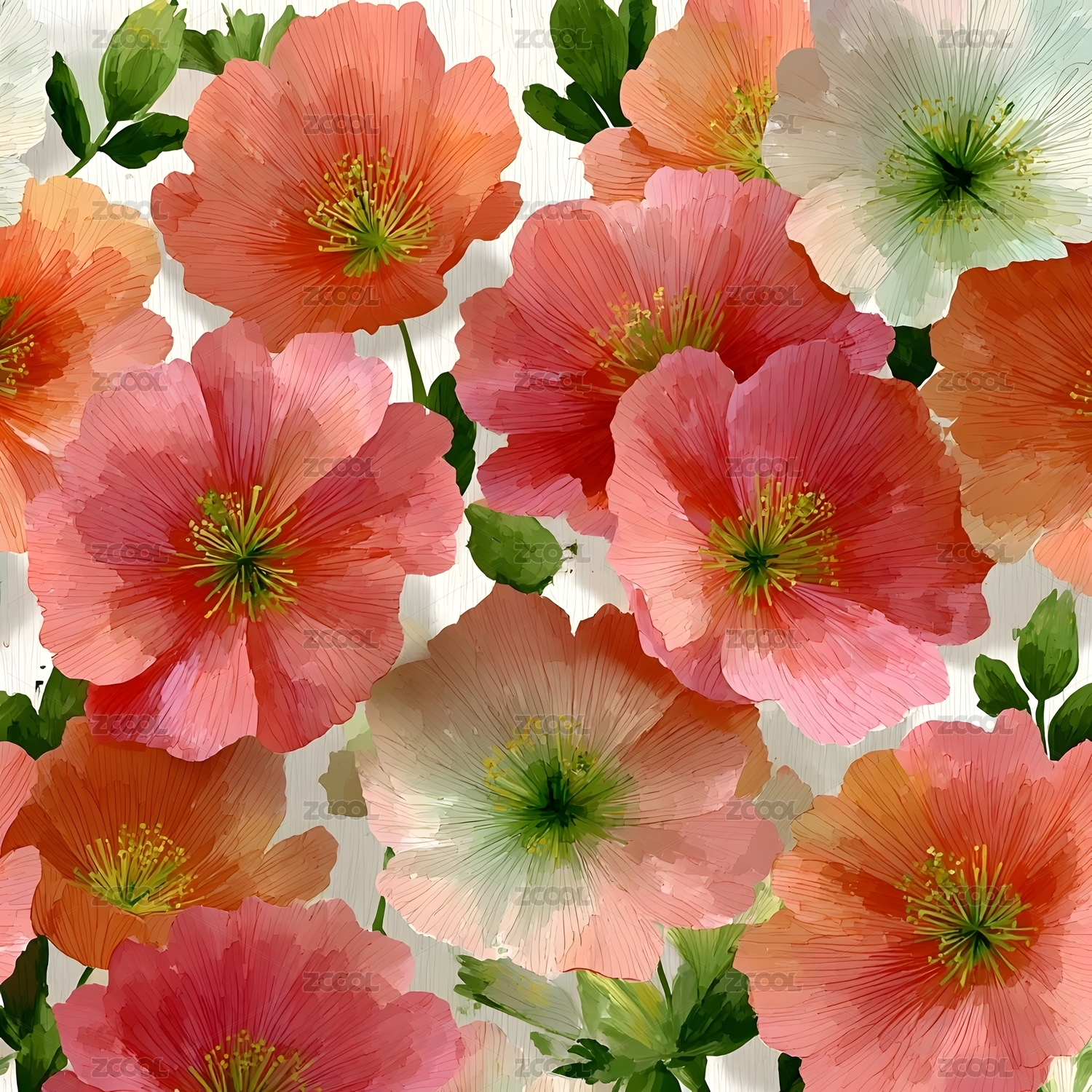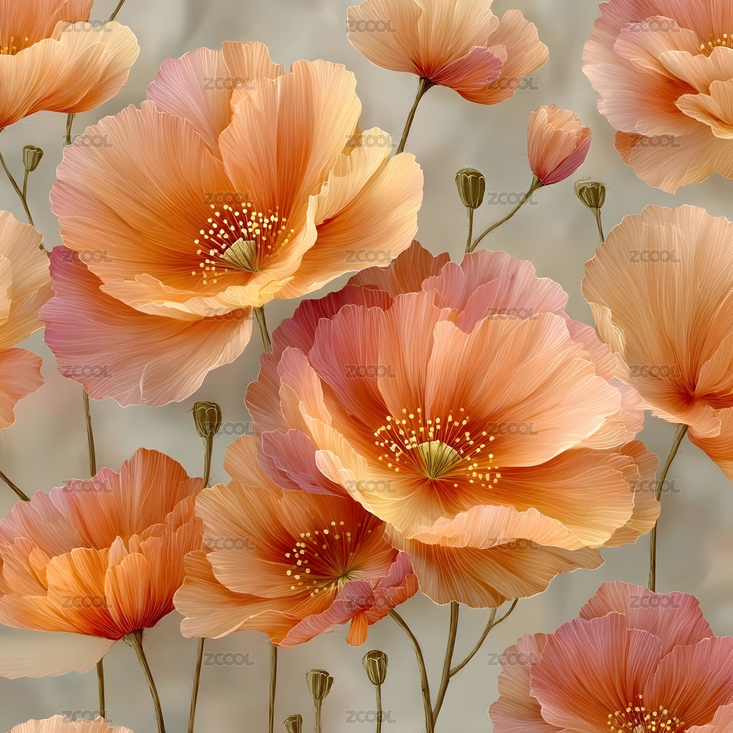 盛开的橙粉色花卉图案