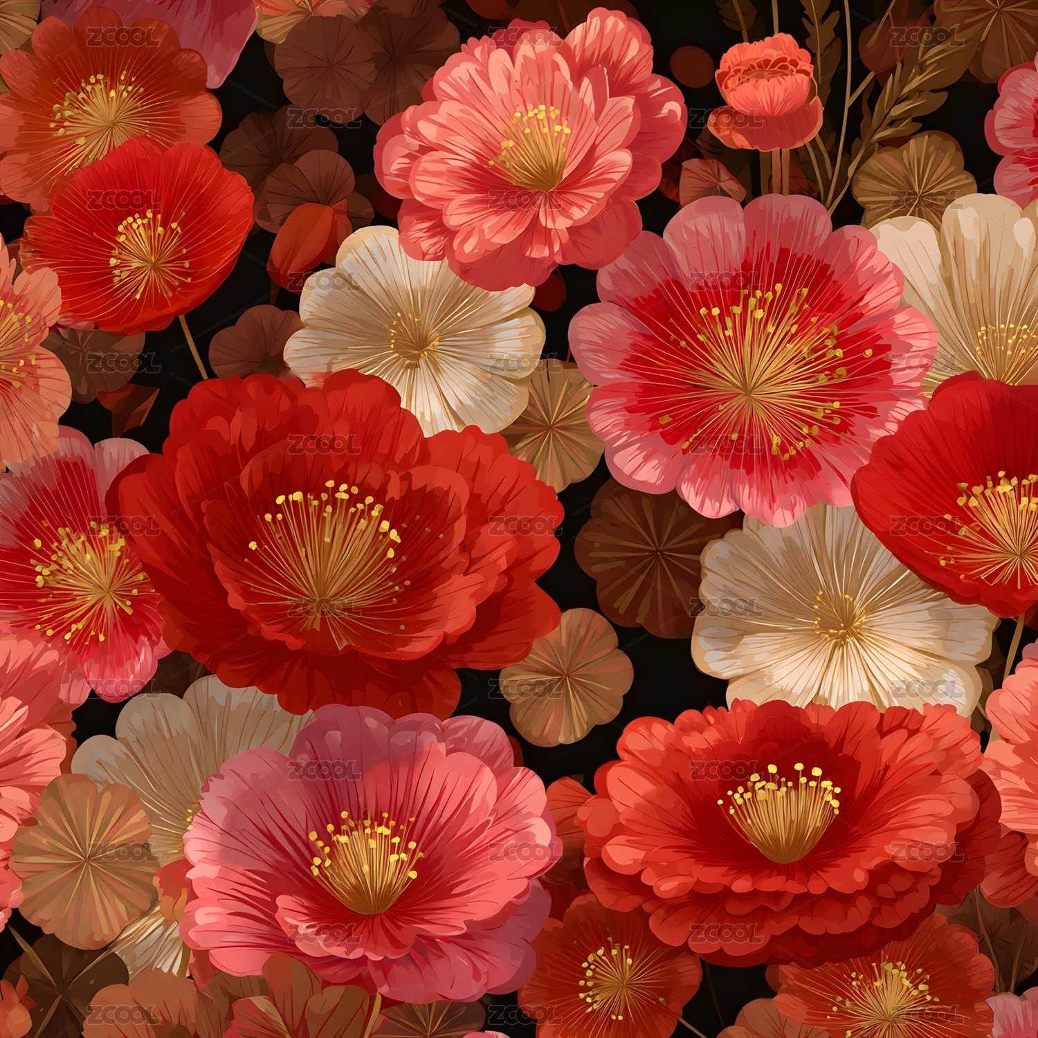 红金花卉艺术图案显华贵喜庆