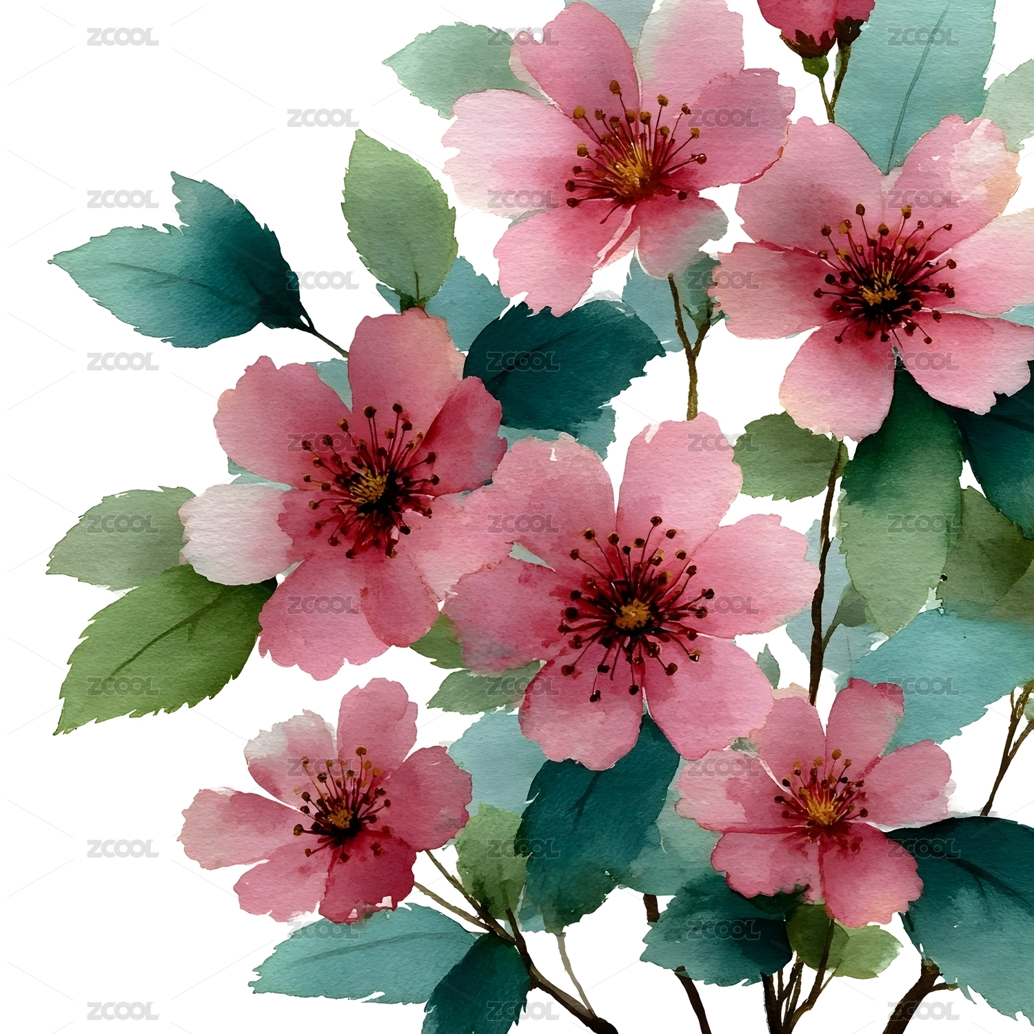 花朵,叶子,花瓣,花蕊,枝条,艺术,植物,盛开,水彩,红色