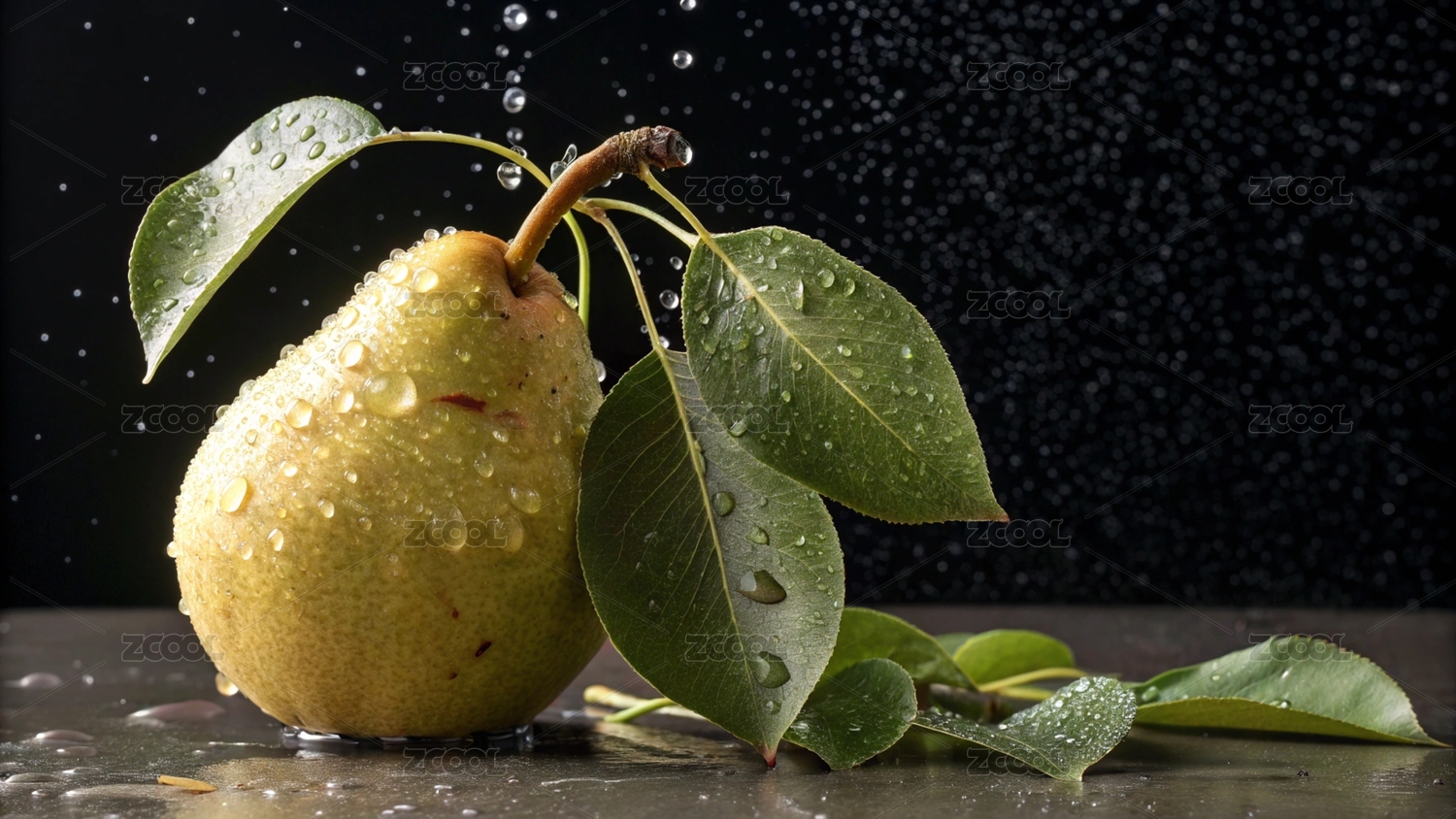 梨子,水珠,绿叶,新鲜,水果,静物,摄影,自然,质感,光影