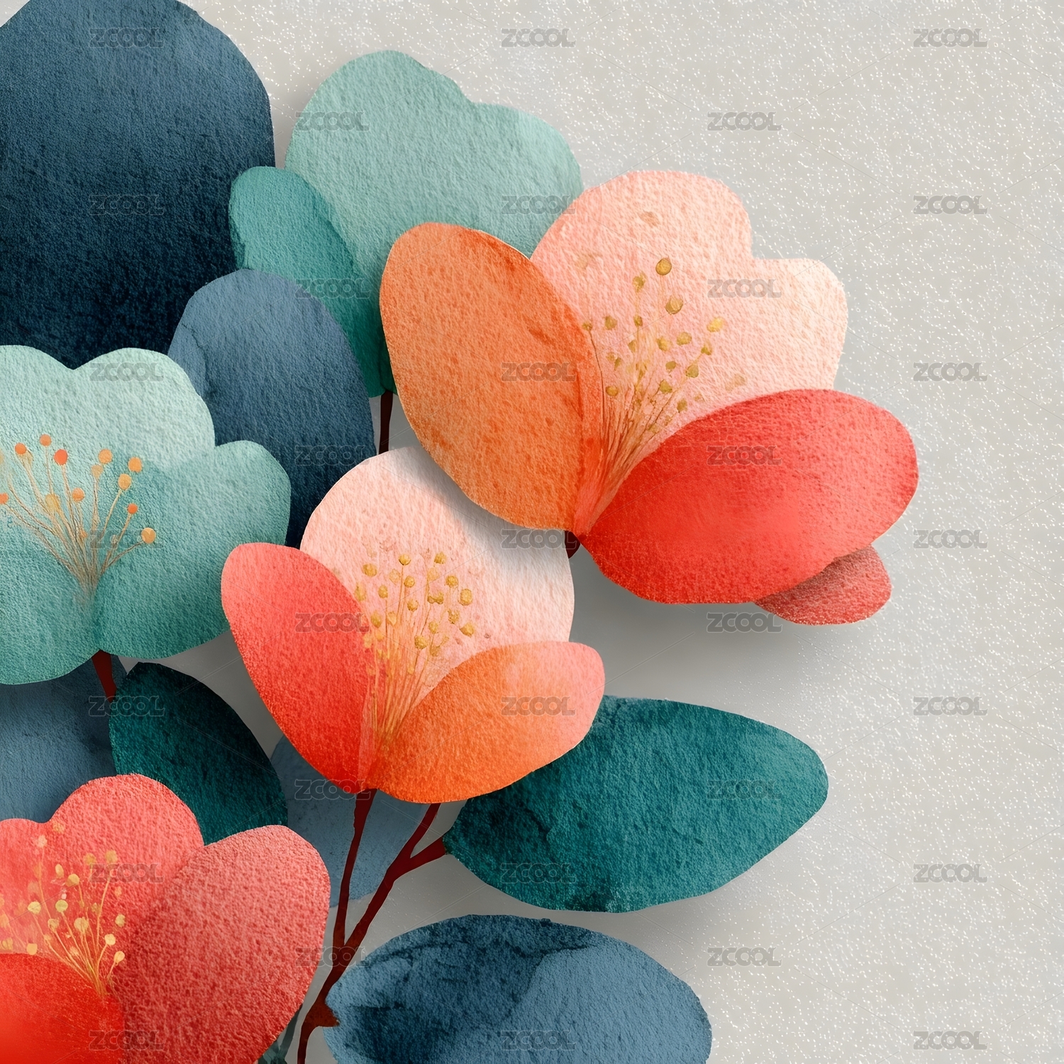 多彩花卉艺术插画