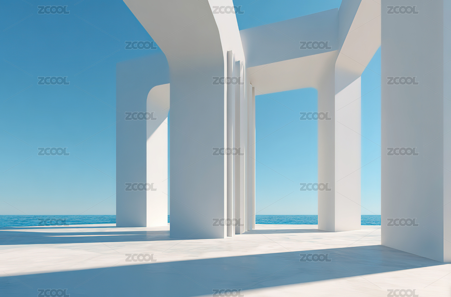 建筑,现代,户外,墙,明亮,简单,白色,走廊,设计