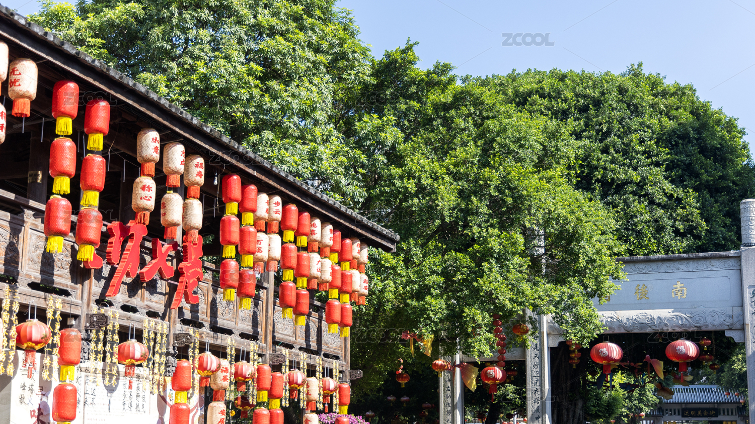 江苏省泰州市老街夏天挂着灯笼的古建筑