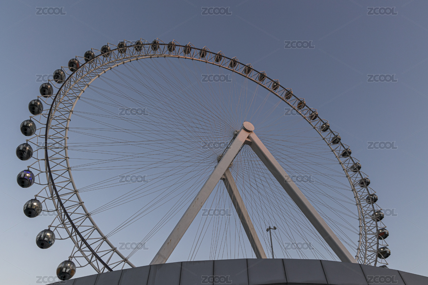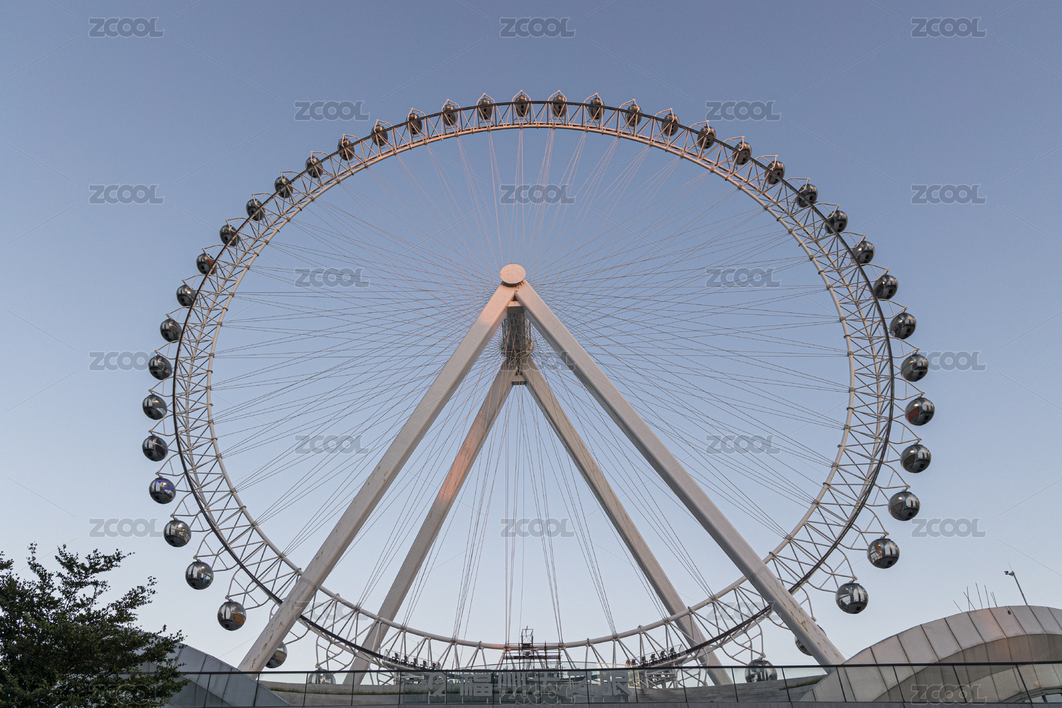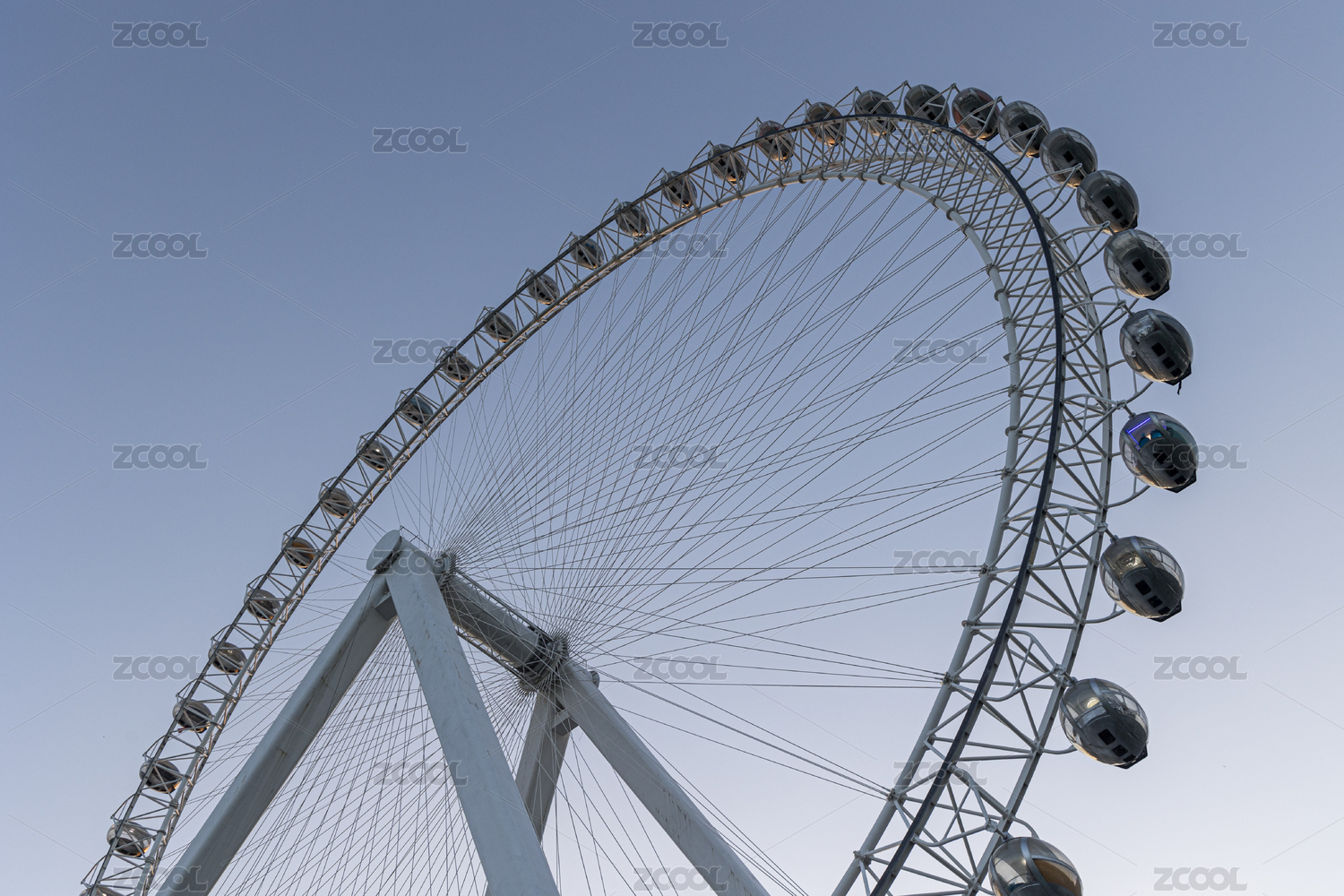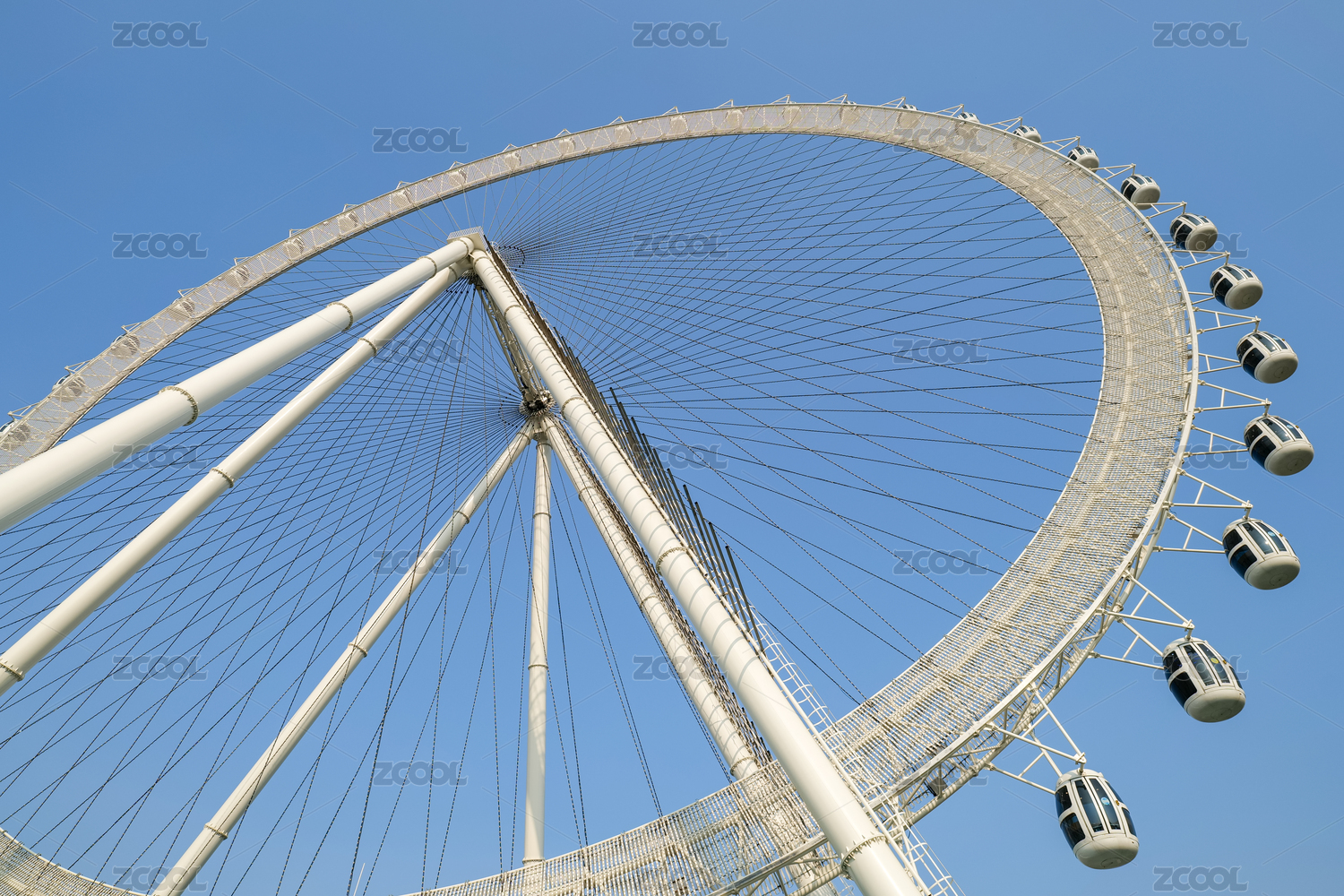 厦门海上世界摩天轮在蓝天下的壮观景象