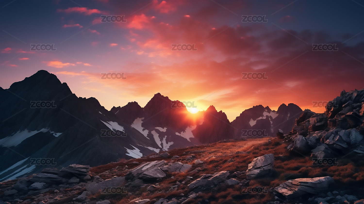 壮丽山脉日出景象