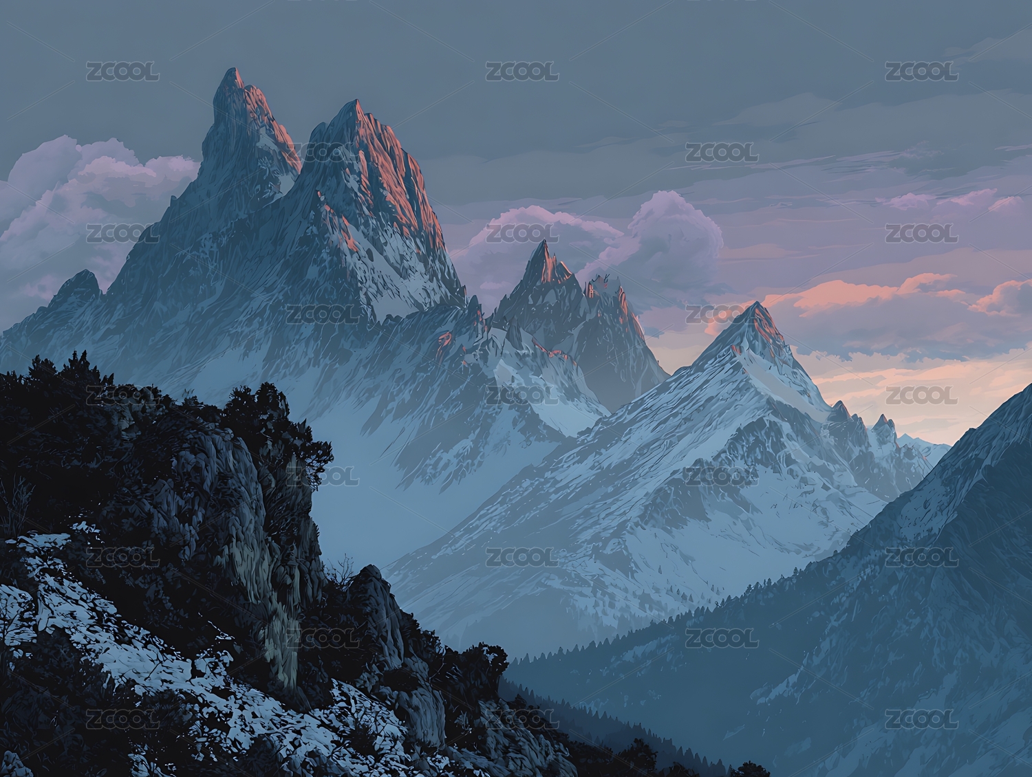 雪山傍晚