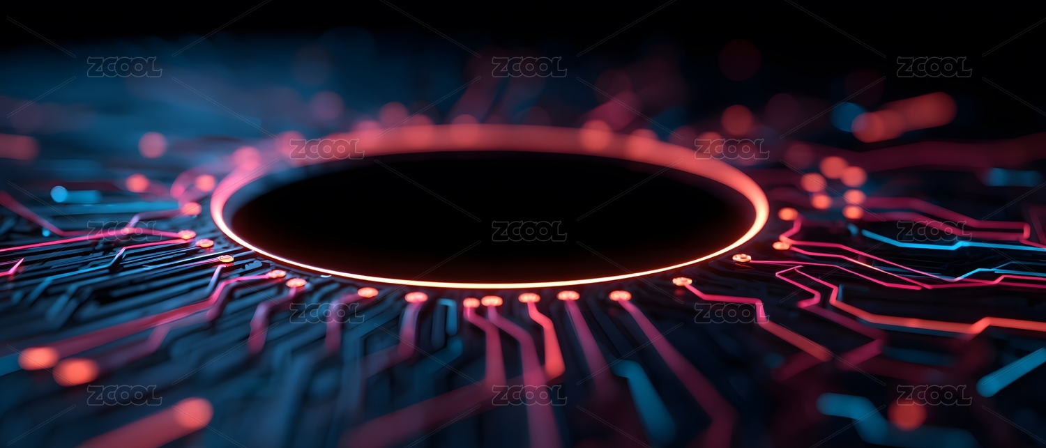 蓝色,背景,科技,光环,圆环,光圈,未来,红色,芯片,电路