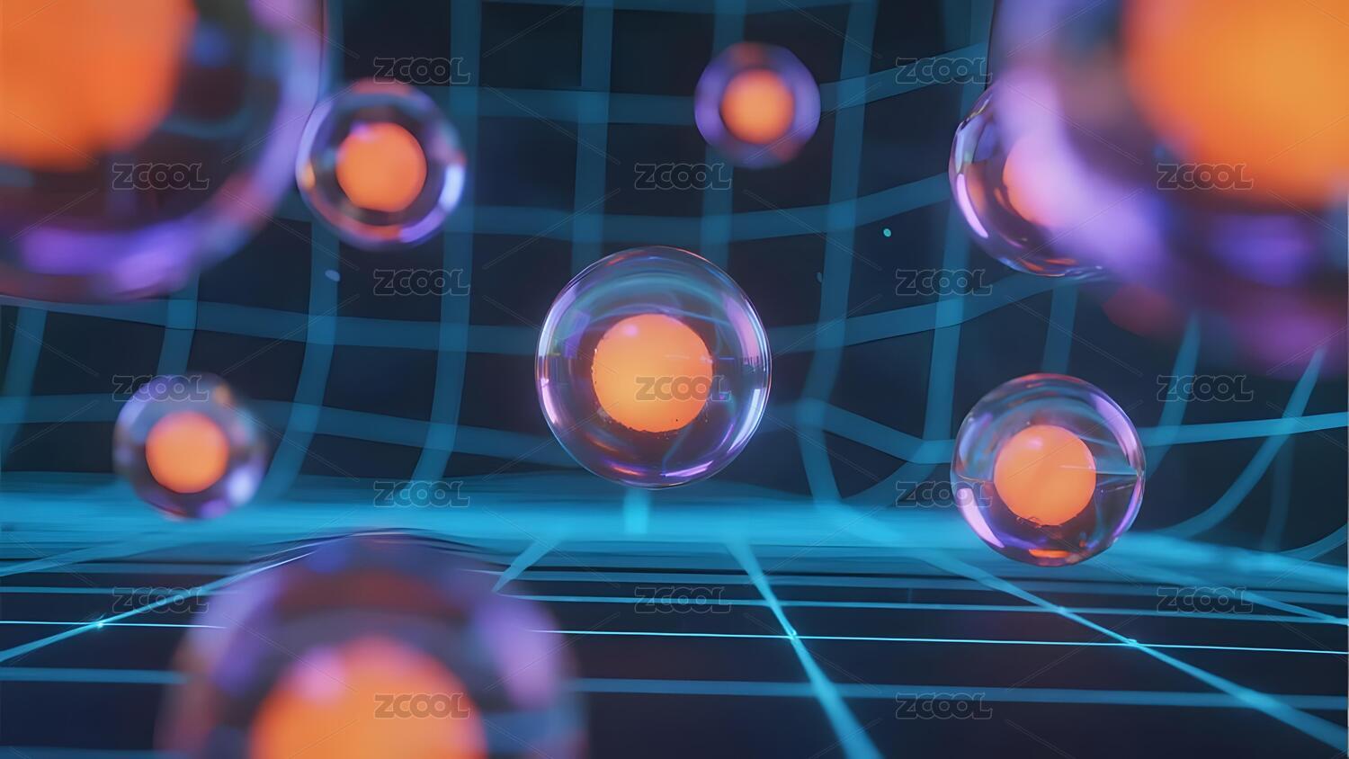 科技,抽象,三维渲染,科技感,光影效果,未来设计,透明球体,网格背景,橙色核心,虚拟现实