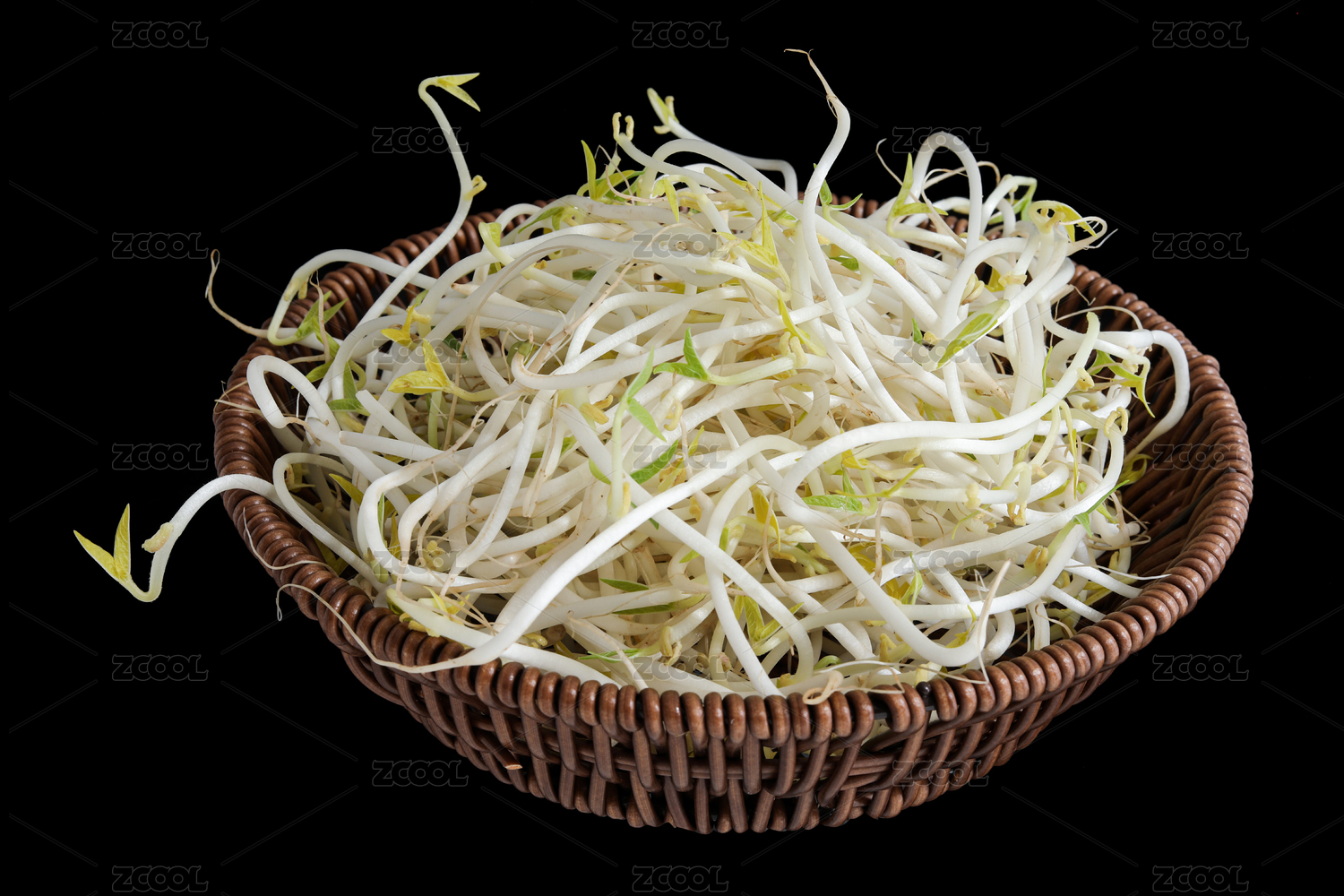 用篮子装着的新鲜绿豆芽白底图