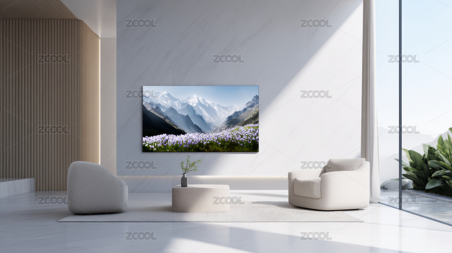 现代客厅中的大屏幕电视主题