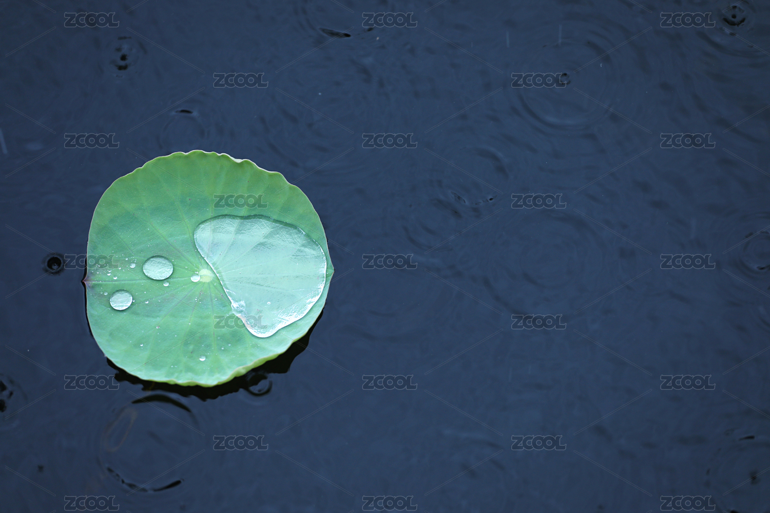 雨中池塘里的荷叶