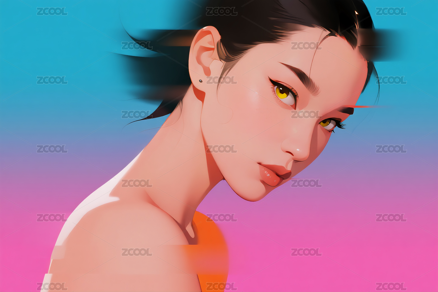 动漫,插画,卡通,人物,女性,女孩,女人,美女,人像