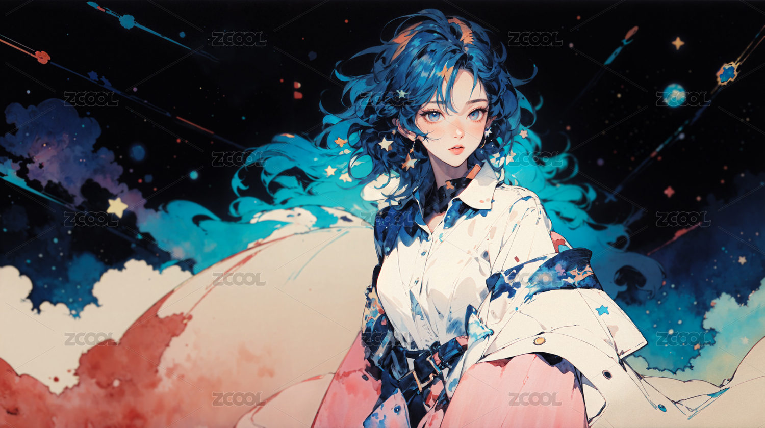 动漫,插画,卡通,人物,女性,女孩,女人,美女,人像