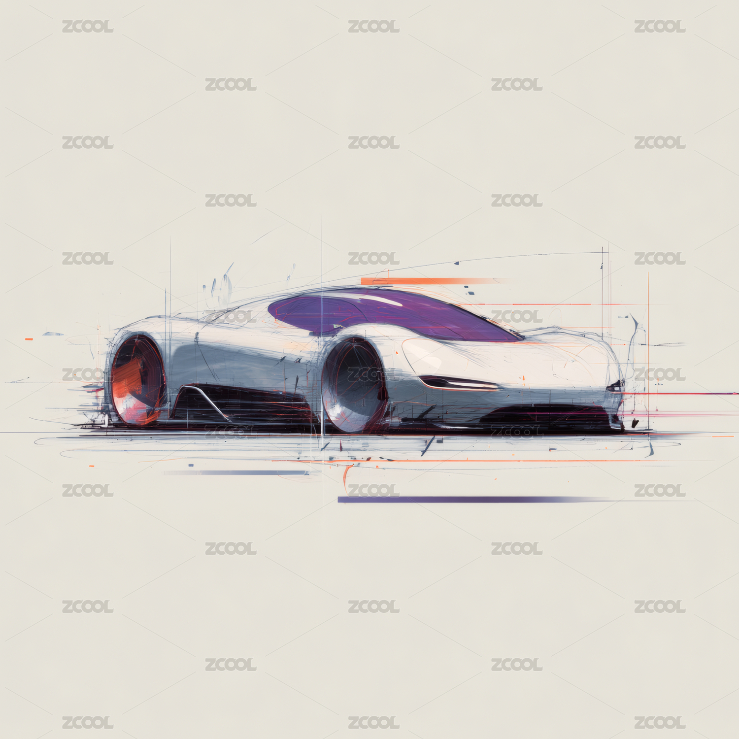 未来概念跑车设计草图